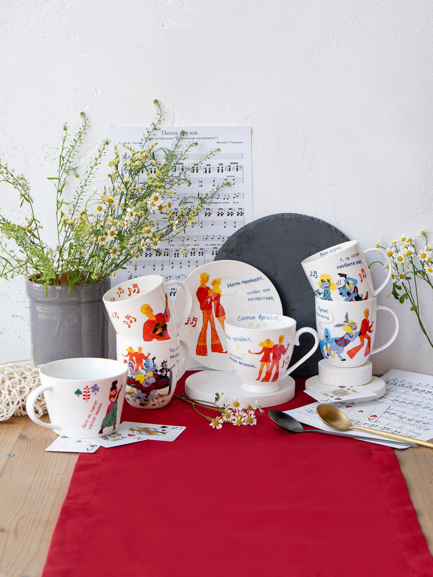 Набор кружек фарфор 420 мл. 4 шт. "Бременские музыканты" чашки для чая в индивидуальной подарочной упаковке