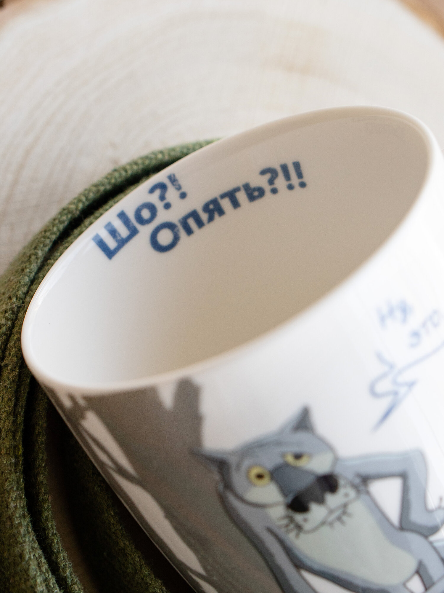 Кружка большая белая фарфор 420 мл. в подарочной упаковке Котенок Гав " Неприятности"