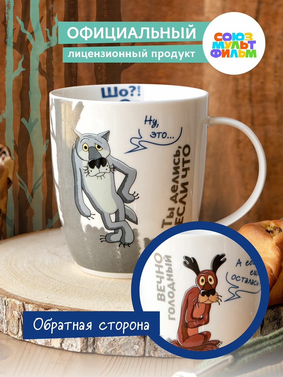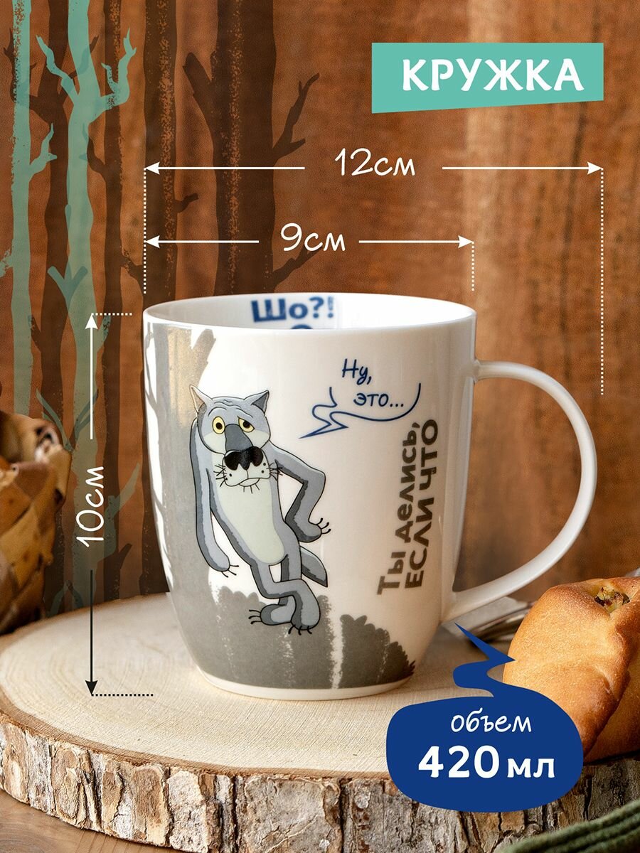 Кружка большая белая фарфор 500 мл. "Ну, Погоди! " в подарочной упаковке. Коралл