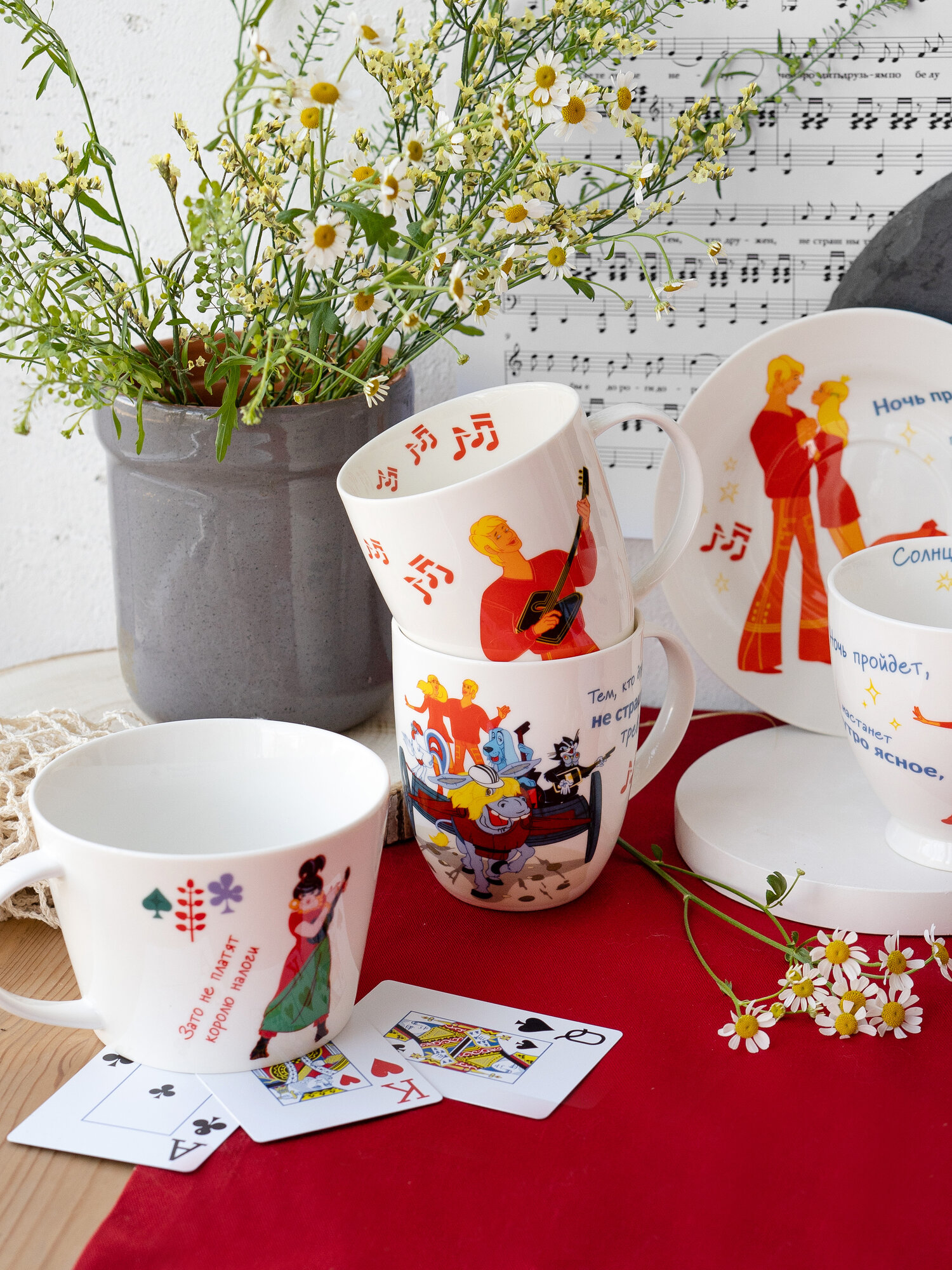 Набор кружек фарфор 420 мл. 4 шт. "Бременские музыканты" чашки для чая в индивидуальной подарочной упаковке