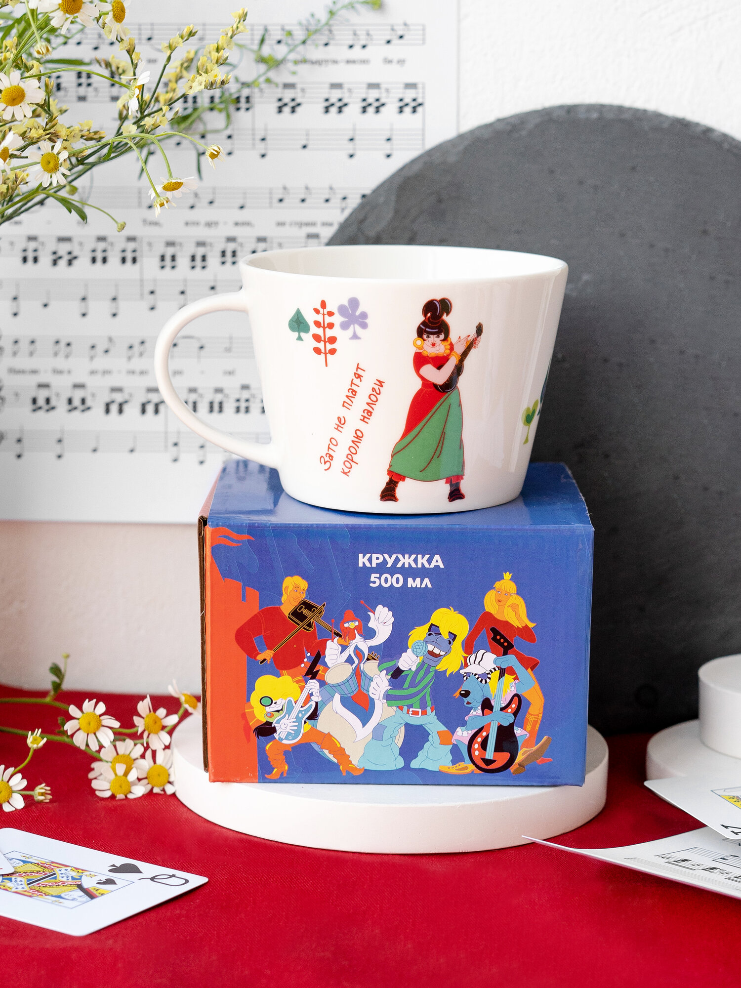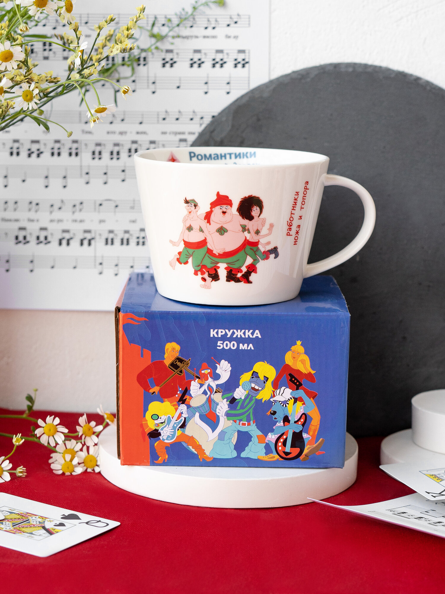 Купить Кружка большая белая фарфор 500 мл. в подарочной упаковке "Бременские музыканты"
