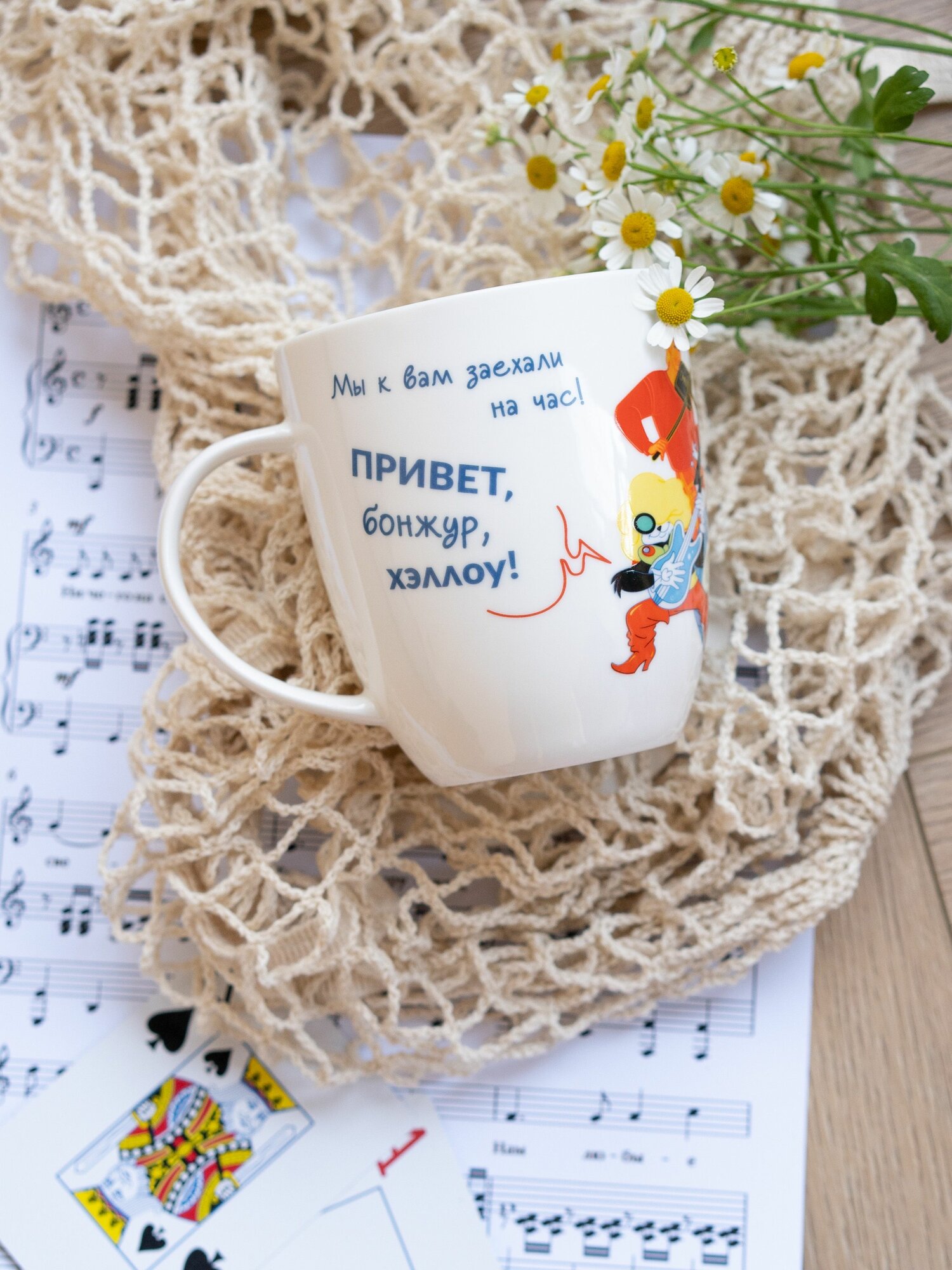 СохранитьКружка большая белая фарфор 420 мл. в подарочной упаковке. Бременские музыканты принт "Мы к вам заехали на час!" интересное: