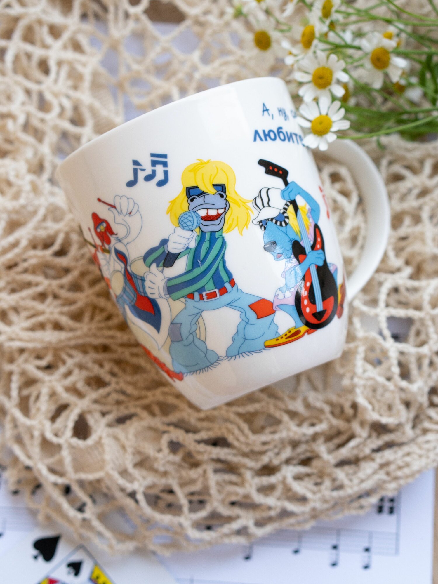 Кружка большая белая фарфор 420 мл. в подарочной упаковке. Бременские музыканты принт "Ничего на свете лучше нету."