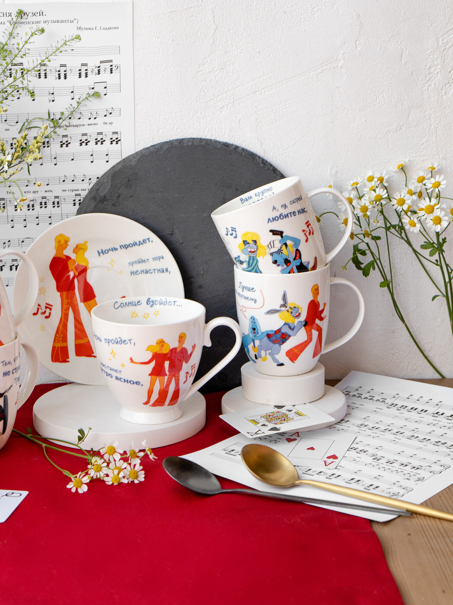 Набор кружек фарфор 420 мл. 4 шт. "Бременские музыканты" чашки для чая в индивидуальной подарочной упаковке