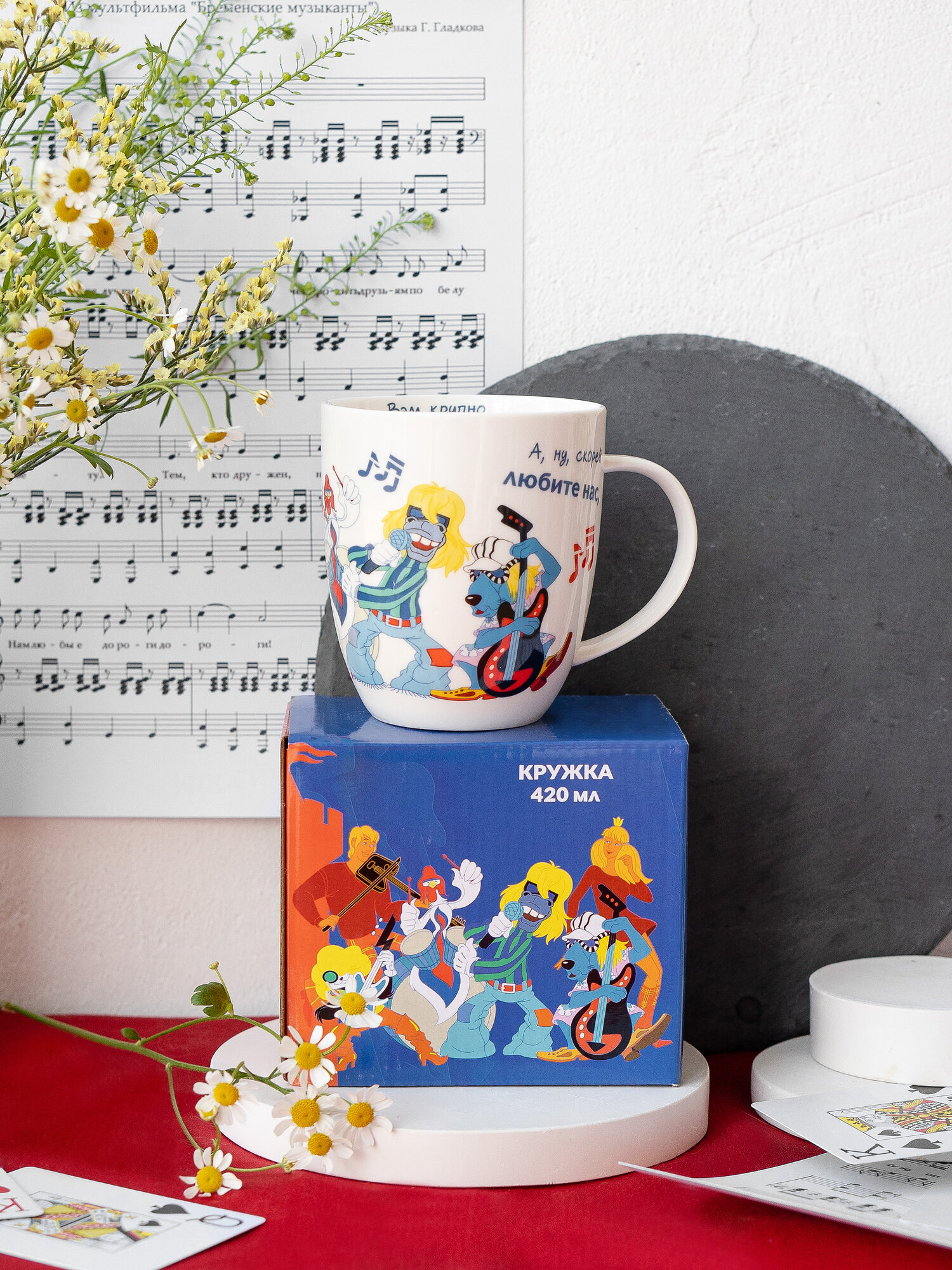 Кружка большая белая фарфор 500 мл. в подарочной упаковке "Бременские музыканты"