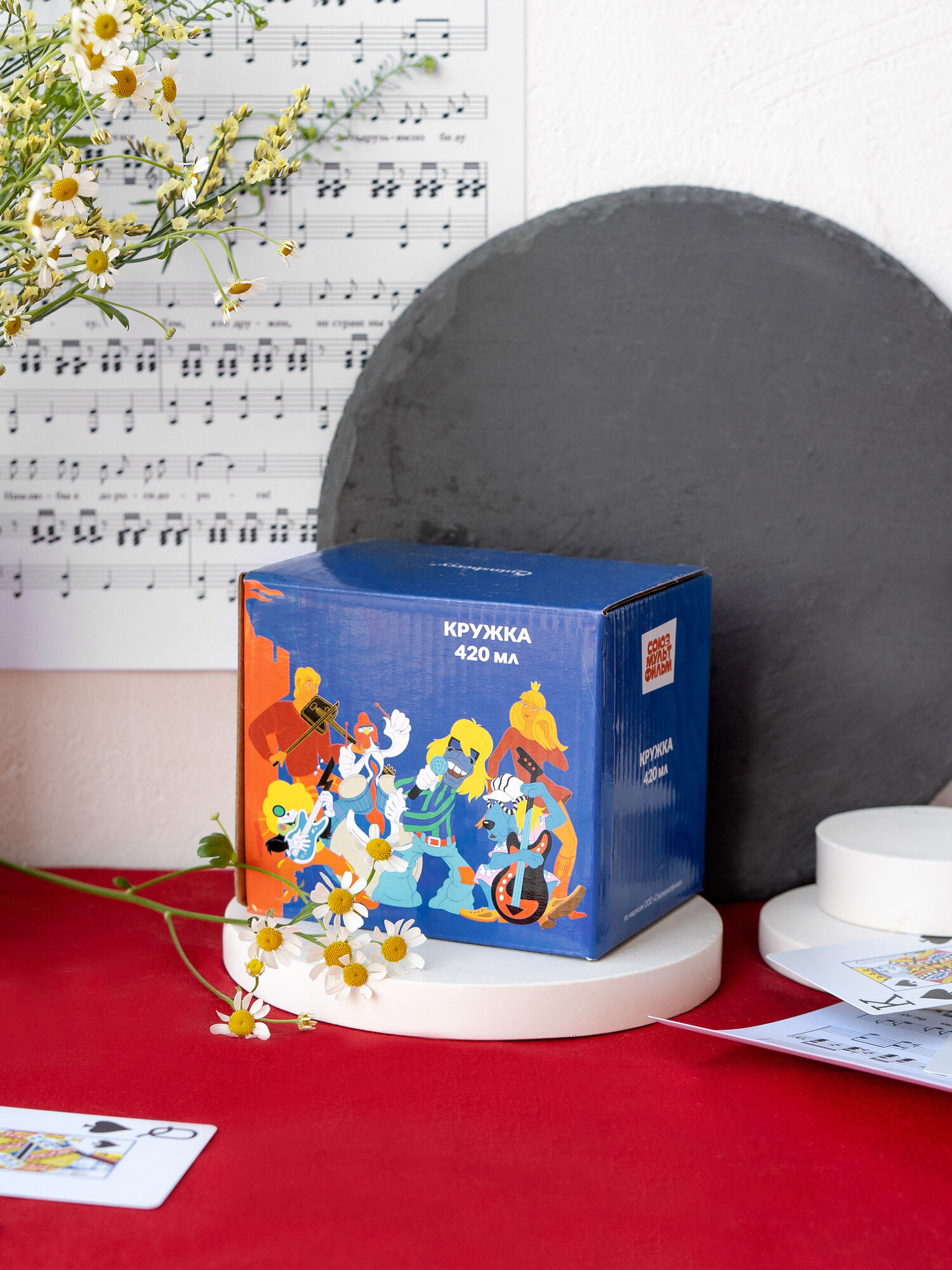 Кружка большая белая фарфор 500 мл. в подарочной упаковке "Бременские музыканты"