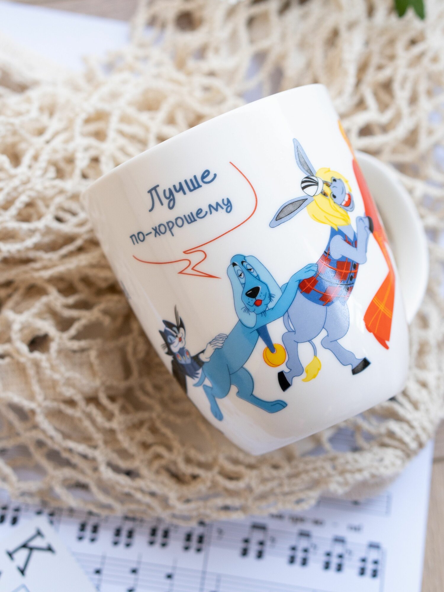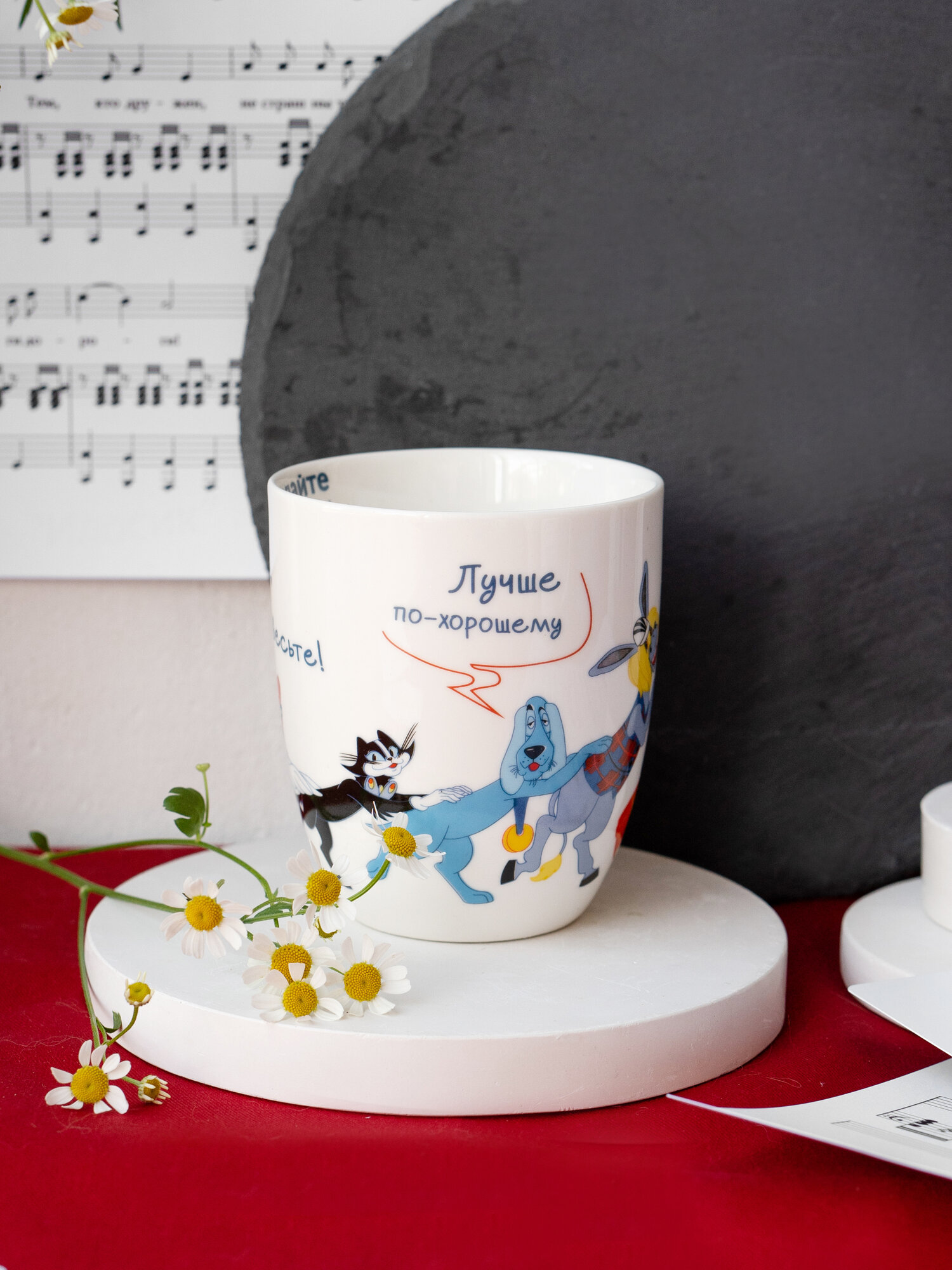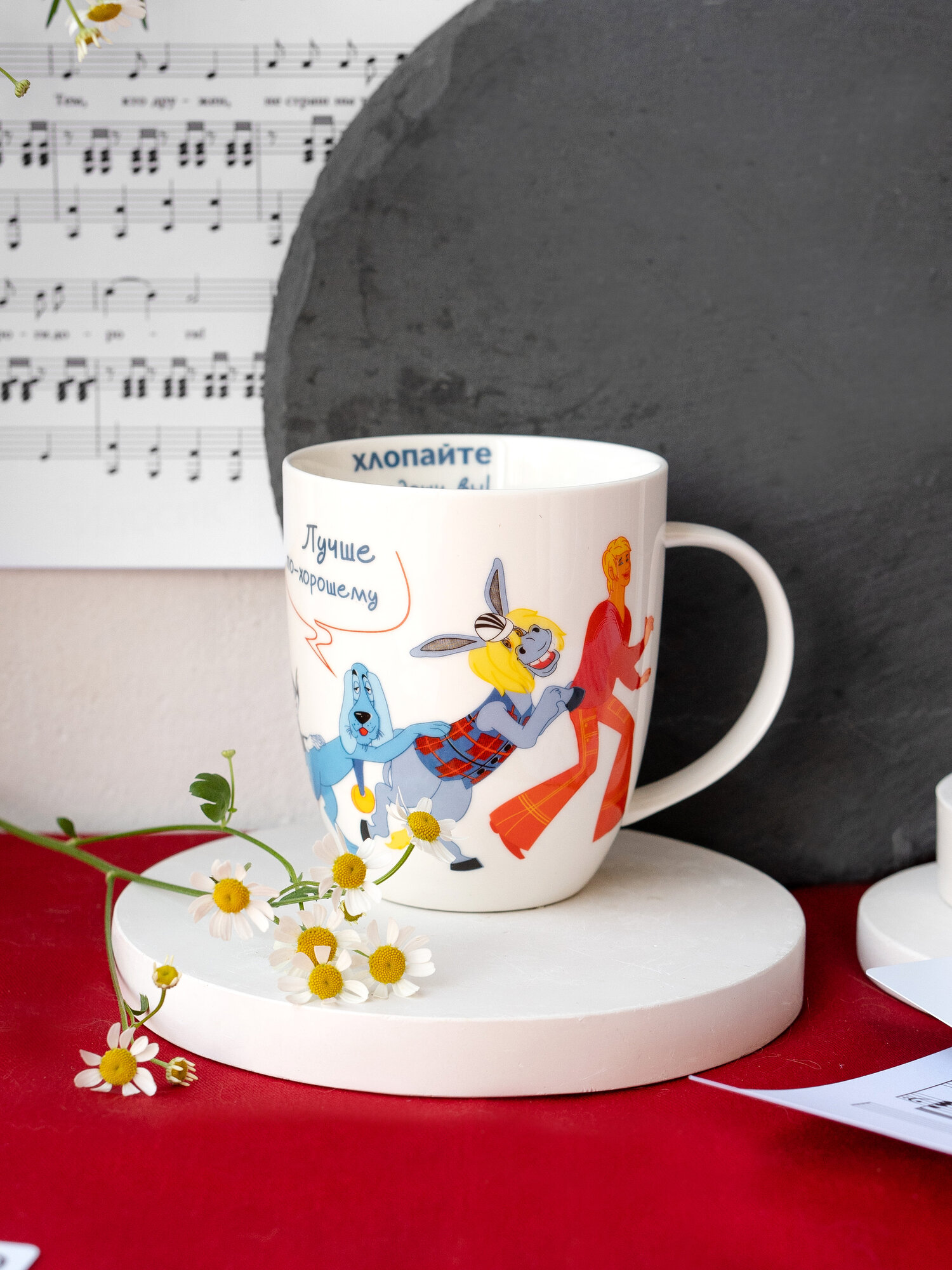 Кружка большая белая фарфор 420 мл. в подарочной упаковке. Бременские музыканты принт "Ничего на свете лучше нету."