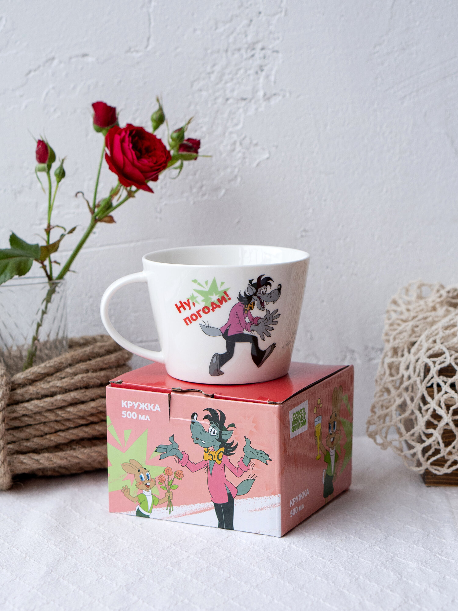 Купить Кружка большая белая фарфор 500 мл. "Ну, Погоди! " в подарочной упаковке. Коралл