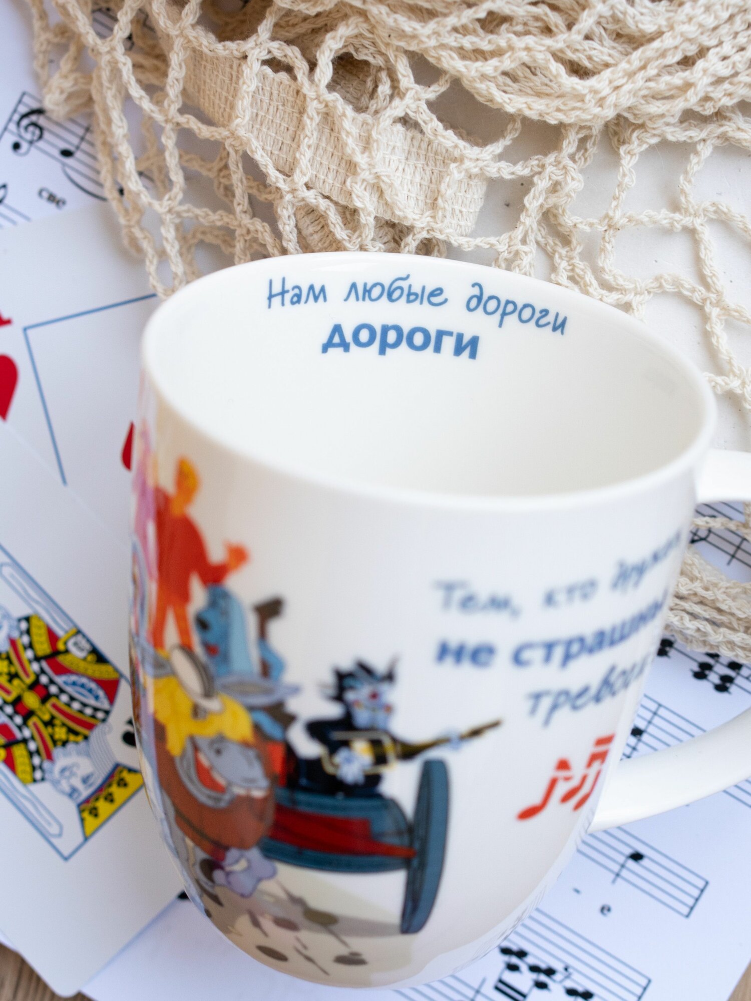 Кружка большая белая фарфор 420 мл. в подарочной упаковке. Бременские музыканты принт "Ничего на свете лучше нету."