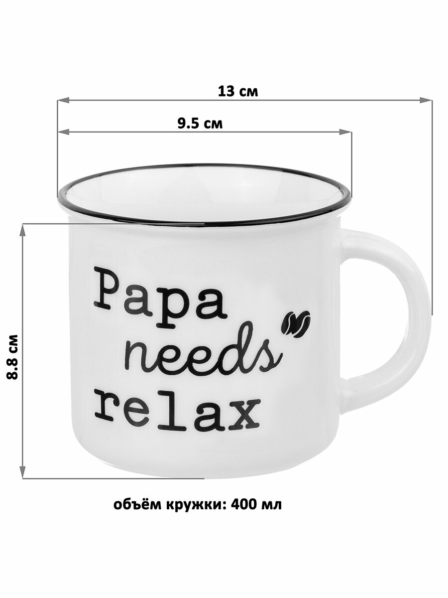 Купить Кружка для чая/кофе/капучино 400 мл Elan Gallery 13*9,5*8,8 см "Papa needs relax" NEW BONE CHINA