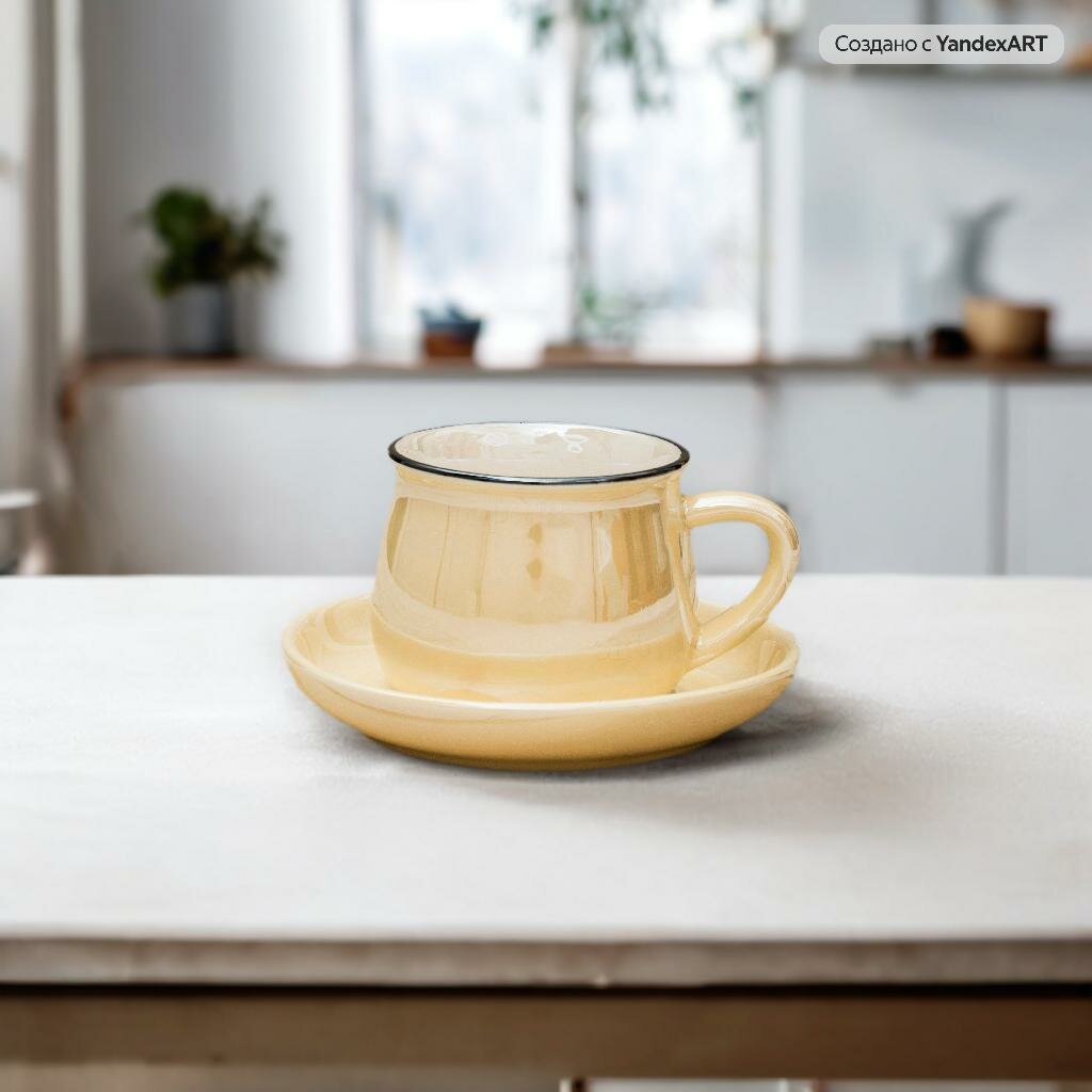 СохранитьКружка кофейная с блюдцем Rich 180 мл Желтая перламутровая, чайная пара, чашка для чая и кофе, женская, подарочная интересное: