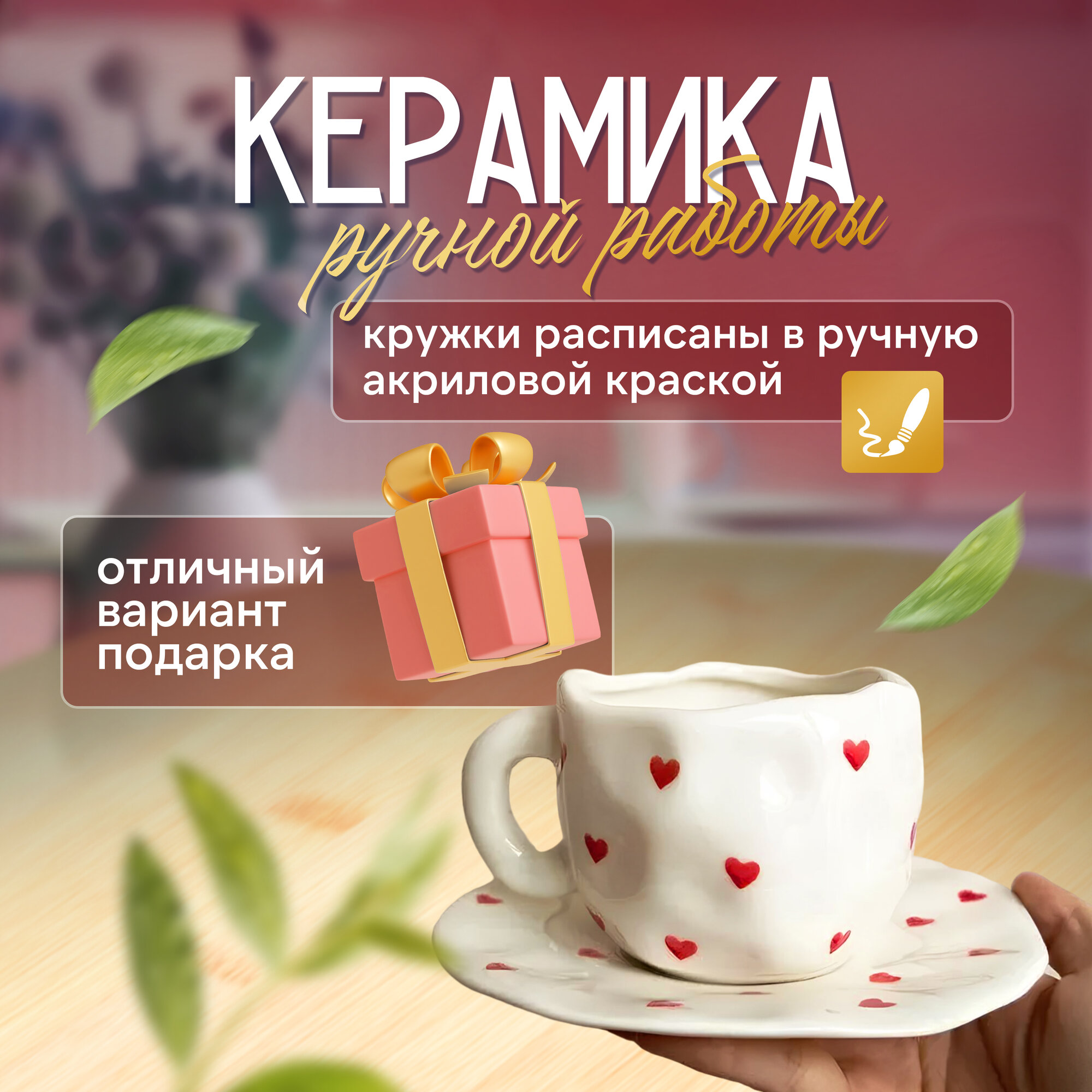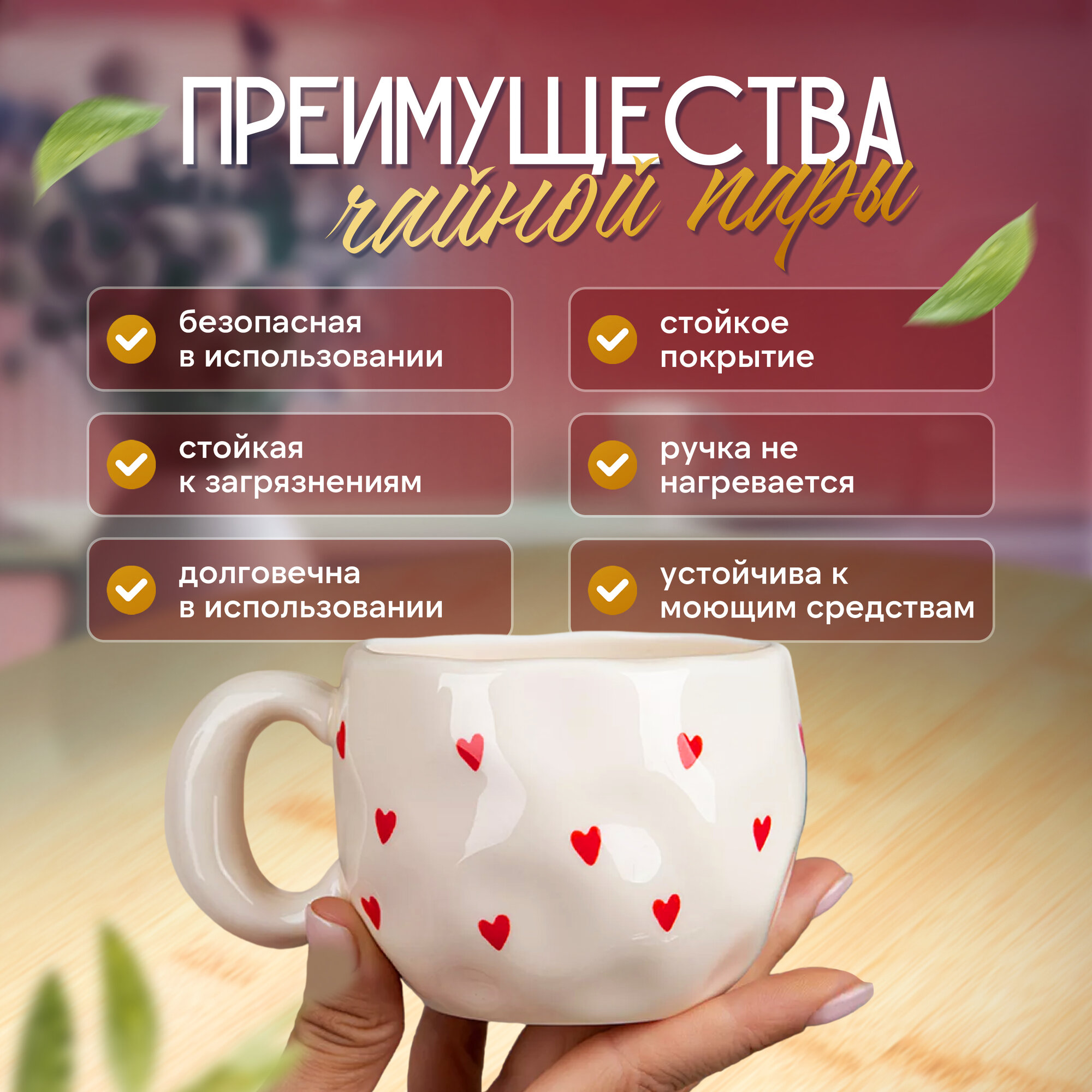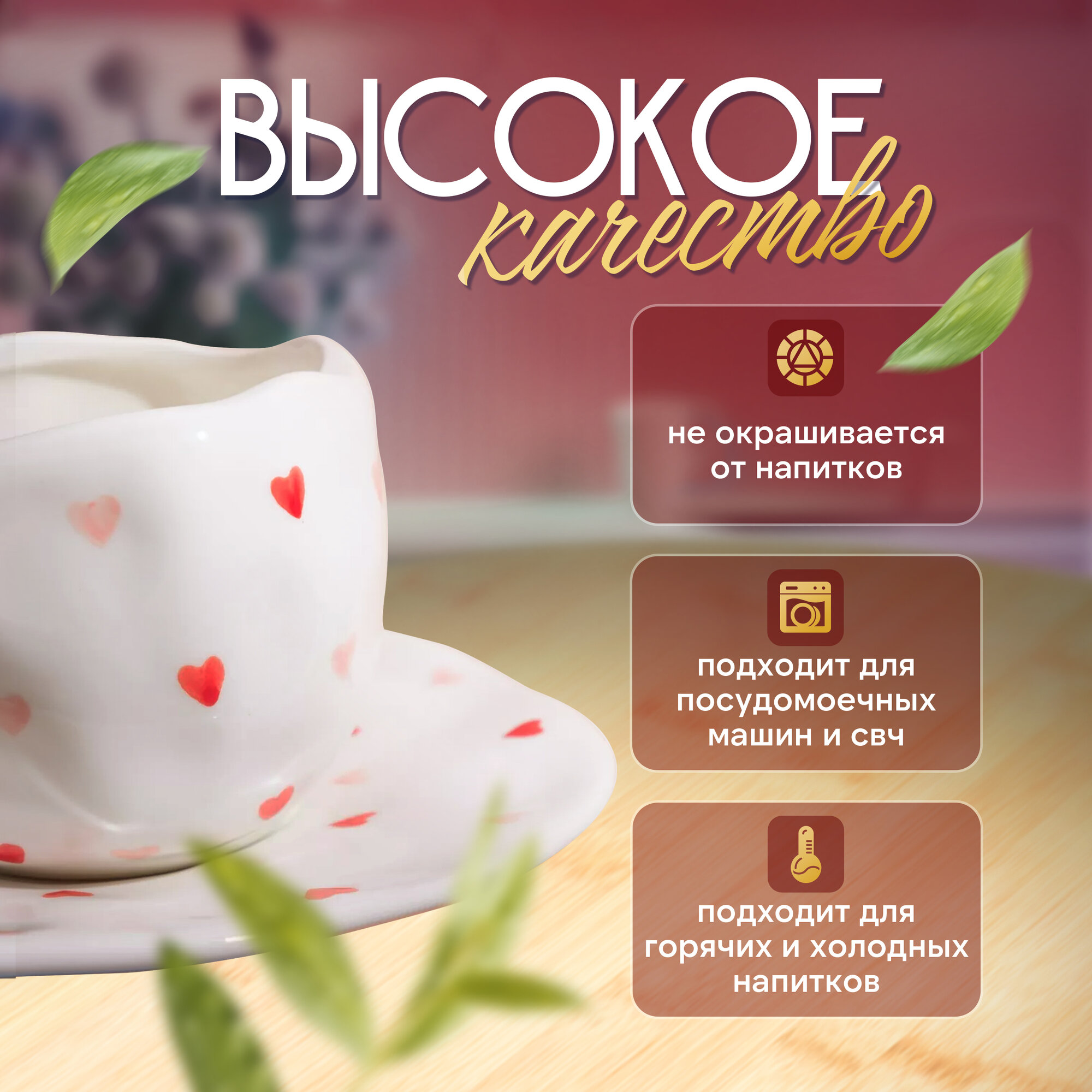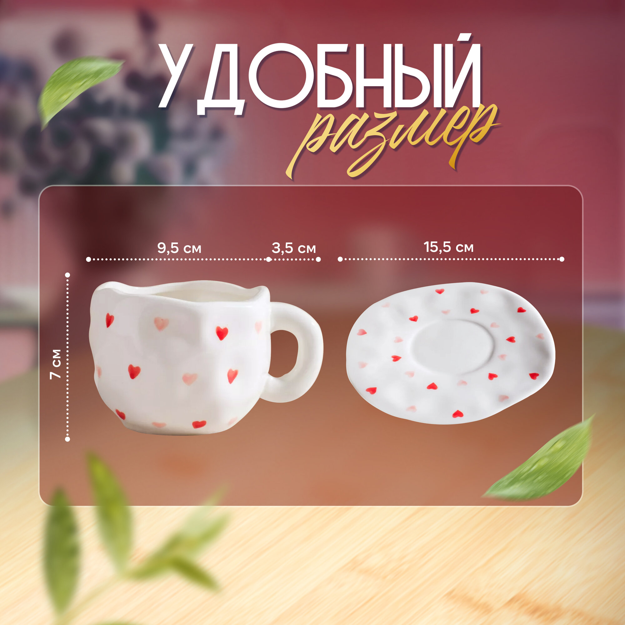 Чашка с блюдцем "Сердечки", керамическая чайная пара, 300 мл интересное: