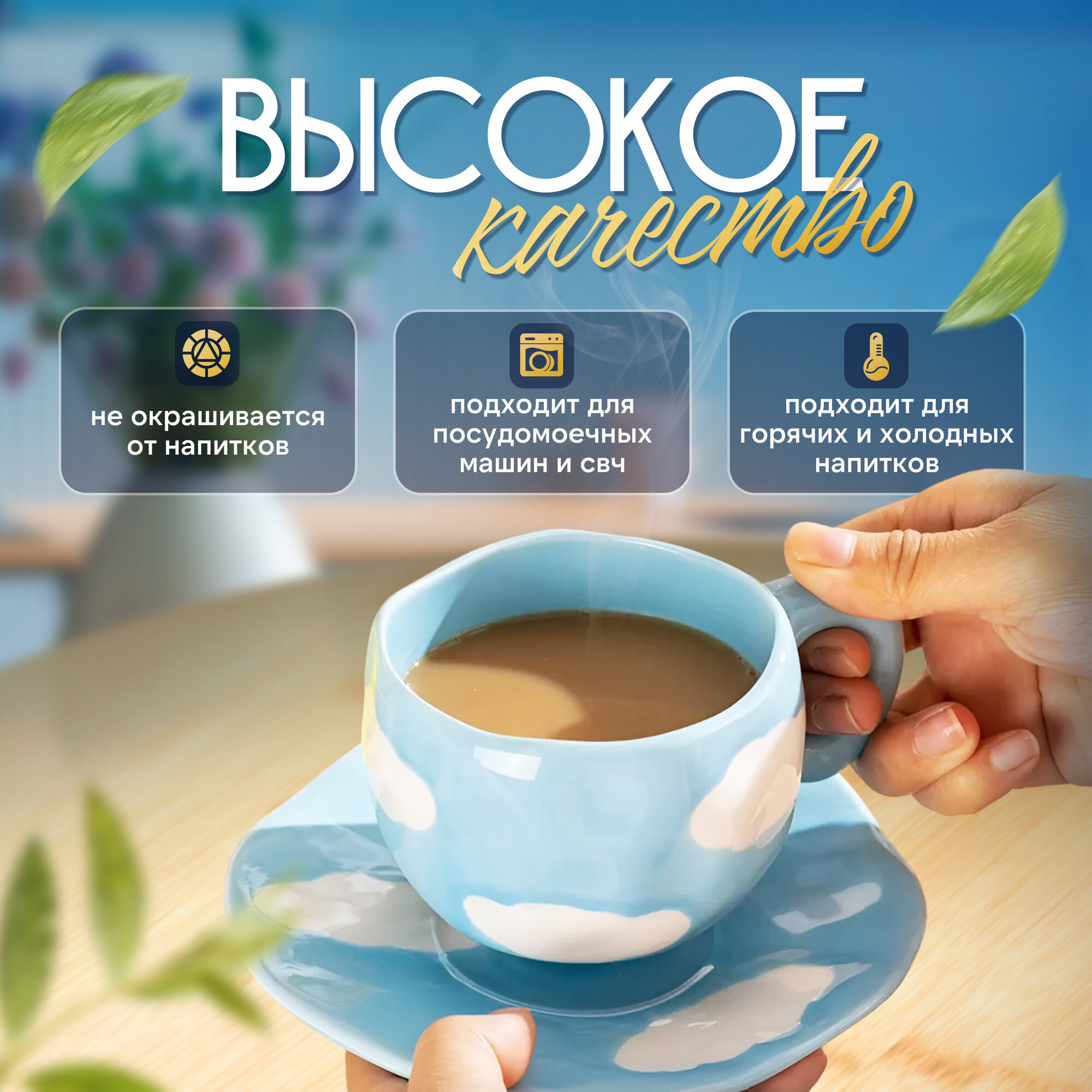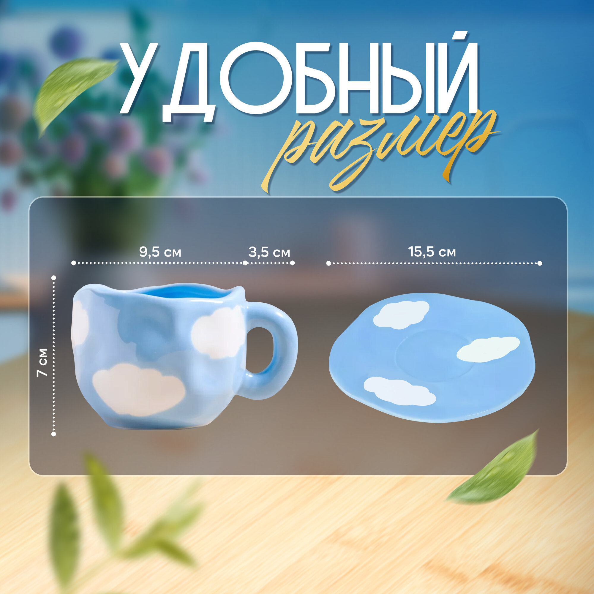 Чашка с блюдцем "Облака", керамическая чайная пара, 300 мл интересное: