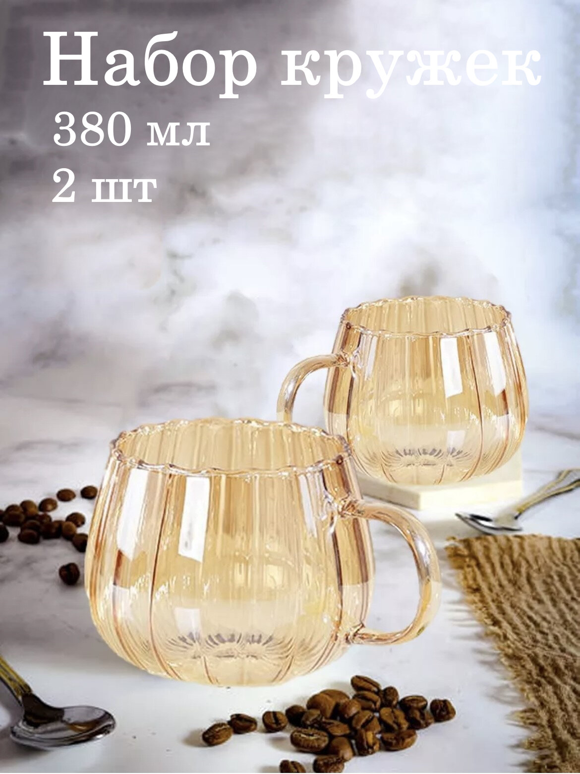 Чайная пара стеклянных кружек, кружки стеклянные для чая и кофе 380мл, набор кружек