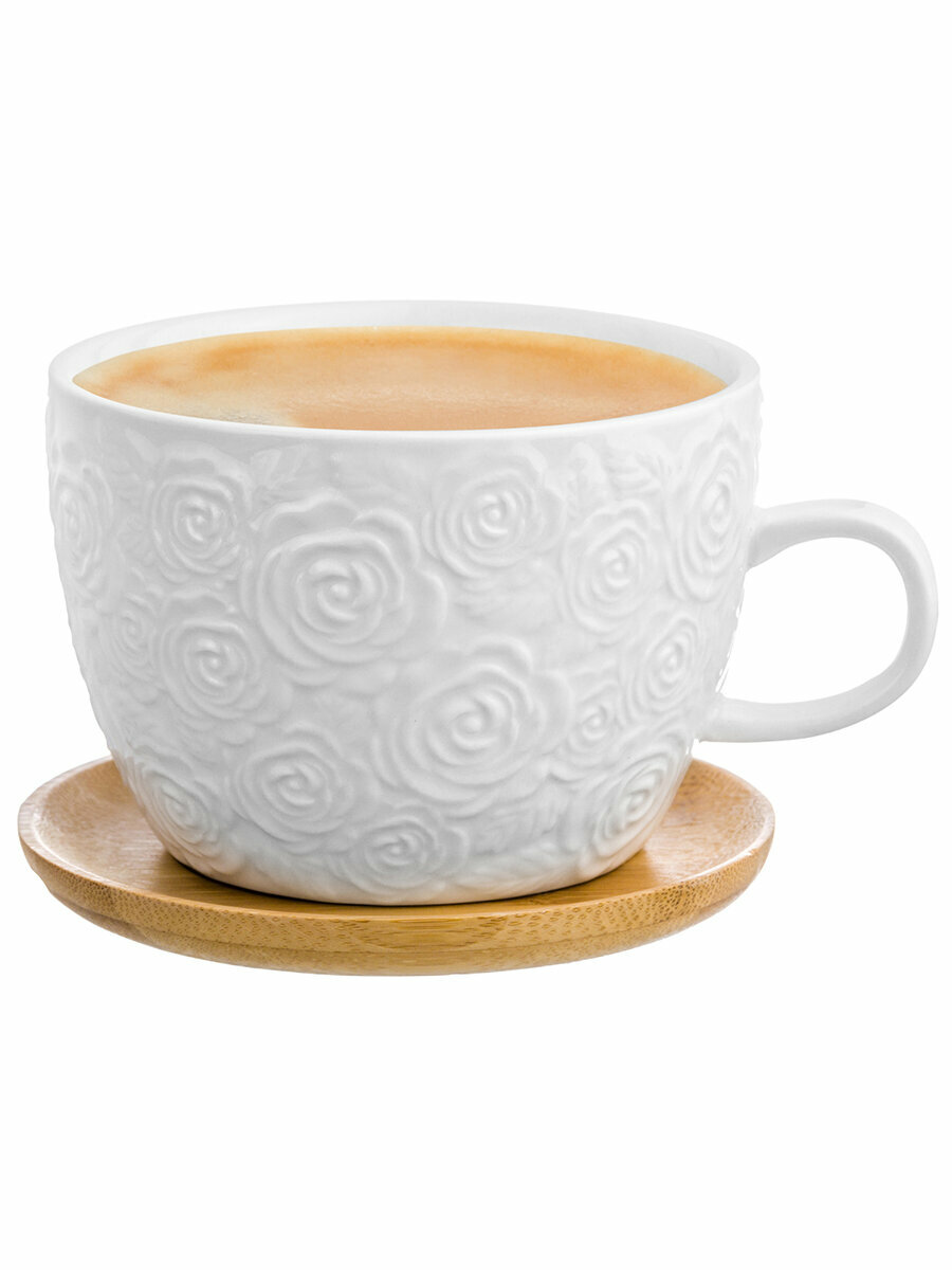 Купить Чашка, кружка для капучино и кофе латте 500 мл Elan Gallery Розы на деревянной подставке