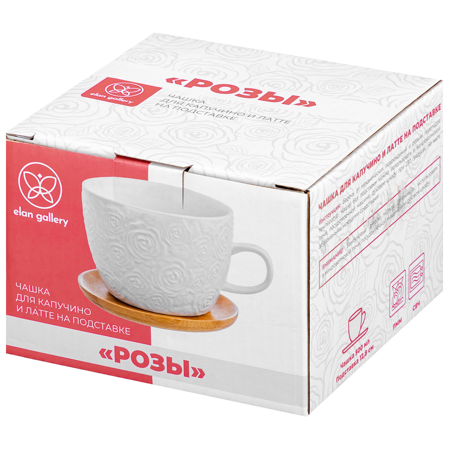 Чашка, кружка для капучино и кофе латте 500 мл Elan Gallery Розы на деревянной подставке интересное: