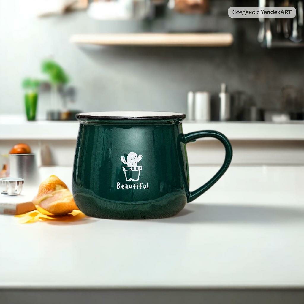 Купить Кружка керамическая Семейная "Кактус Beautiful" 280 мл, зеленая, глянцевая, для чая/кофе, подарочная с принтом