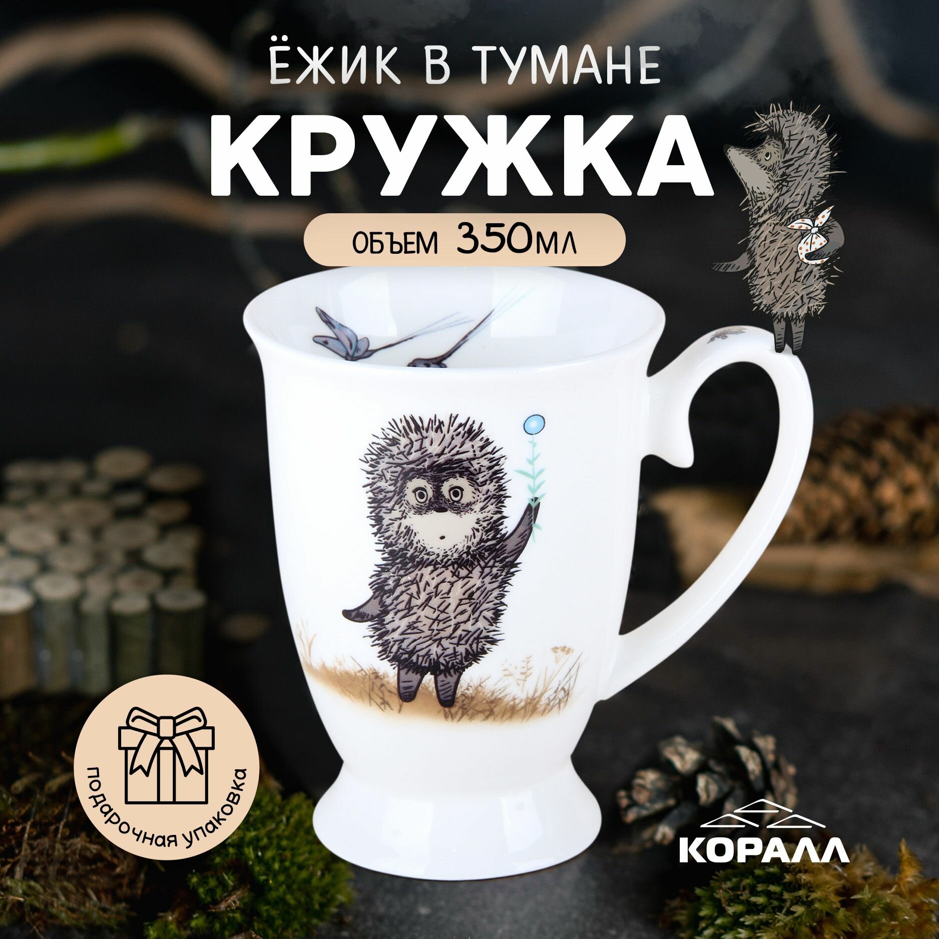СохранитьКружка большая белая для чая кофе какао с принтом Ежик в тумане 350 мл в подарочной упаковке Коралл интересное: