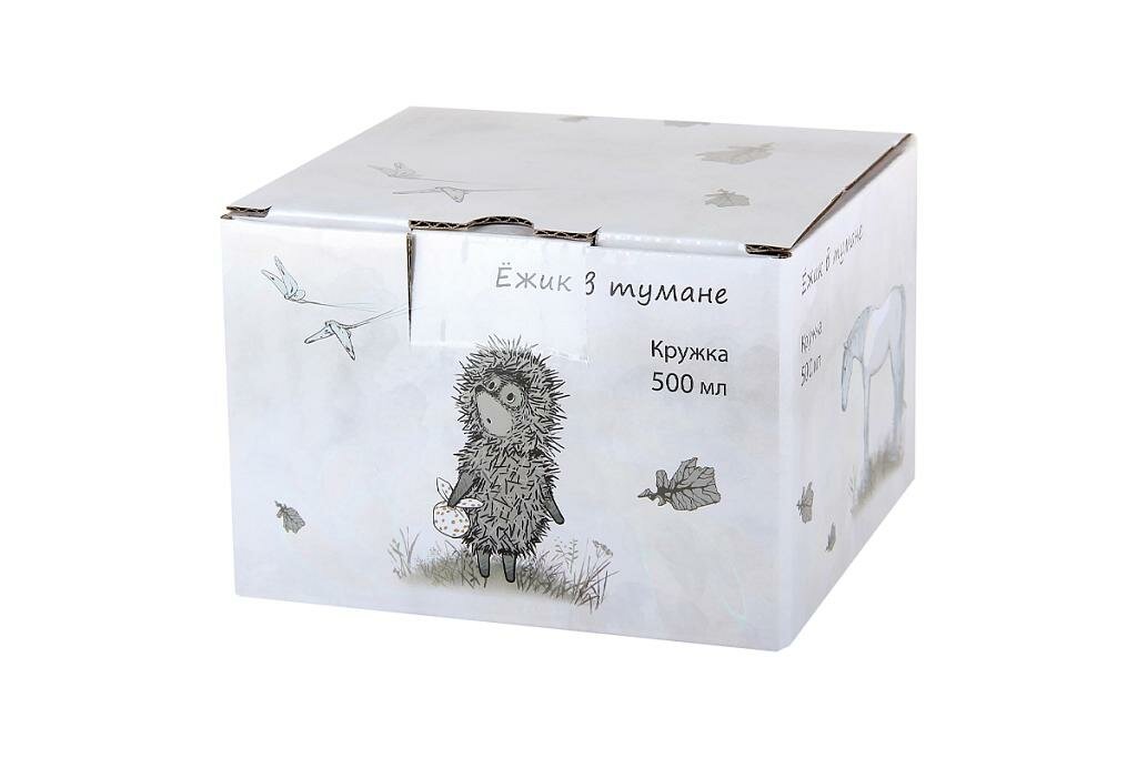 Кружка большая белая для чая кофе какао с принтом Ежик в тумане 350 мл в подарочной упаковке Коралл