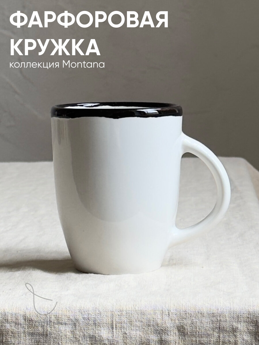 Кружка большая с черной каймой объемом 350 мл, фарфор Chasha