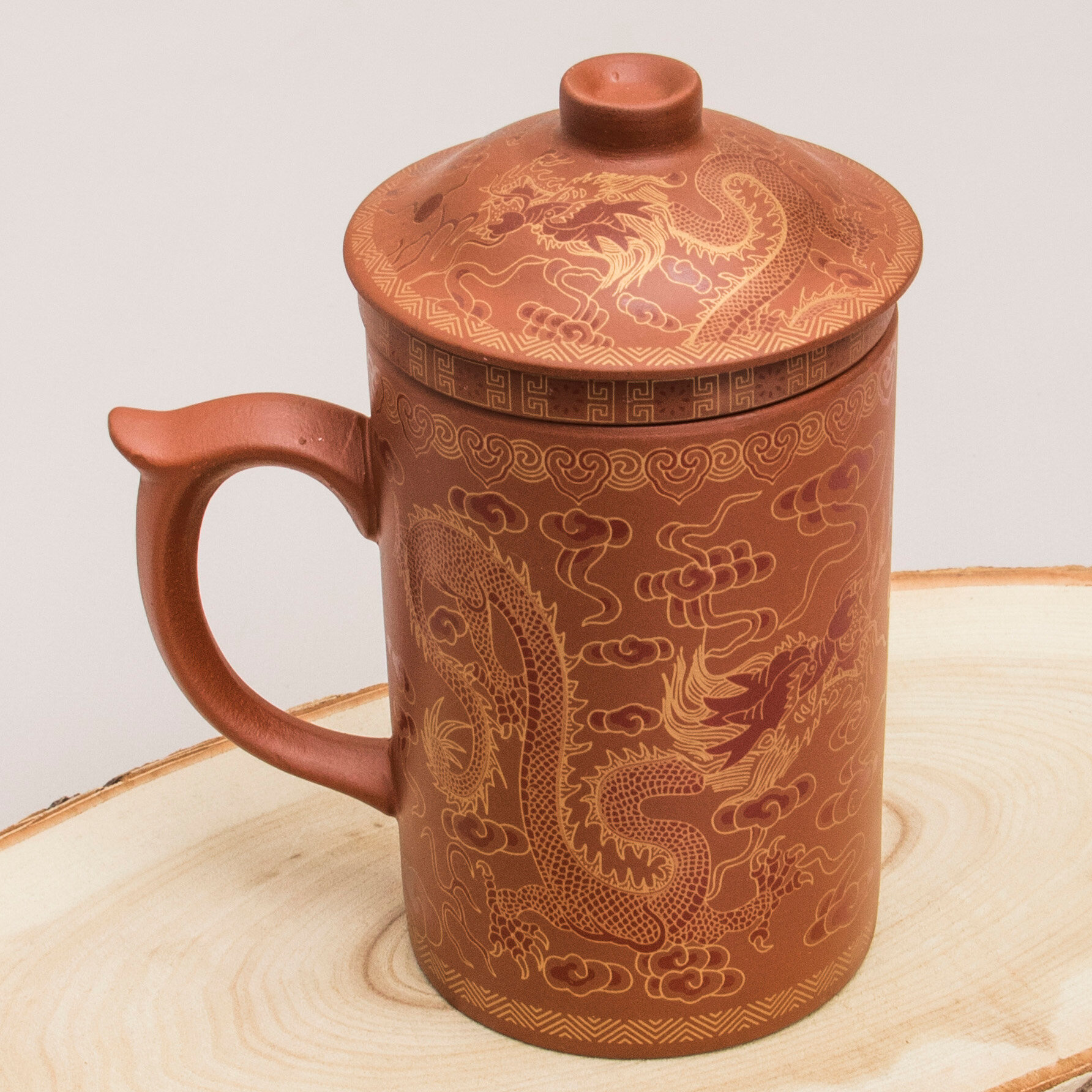 Кружка из глины Золотой Дракон N 2 заварочная с ситечком 330 мл Эврика, подарочная, символ года 23 февраля, 8 марта