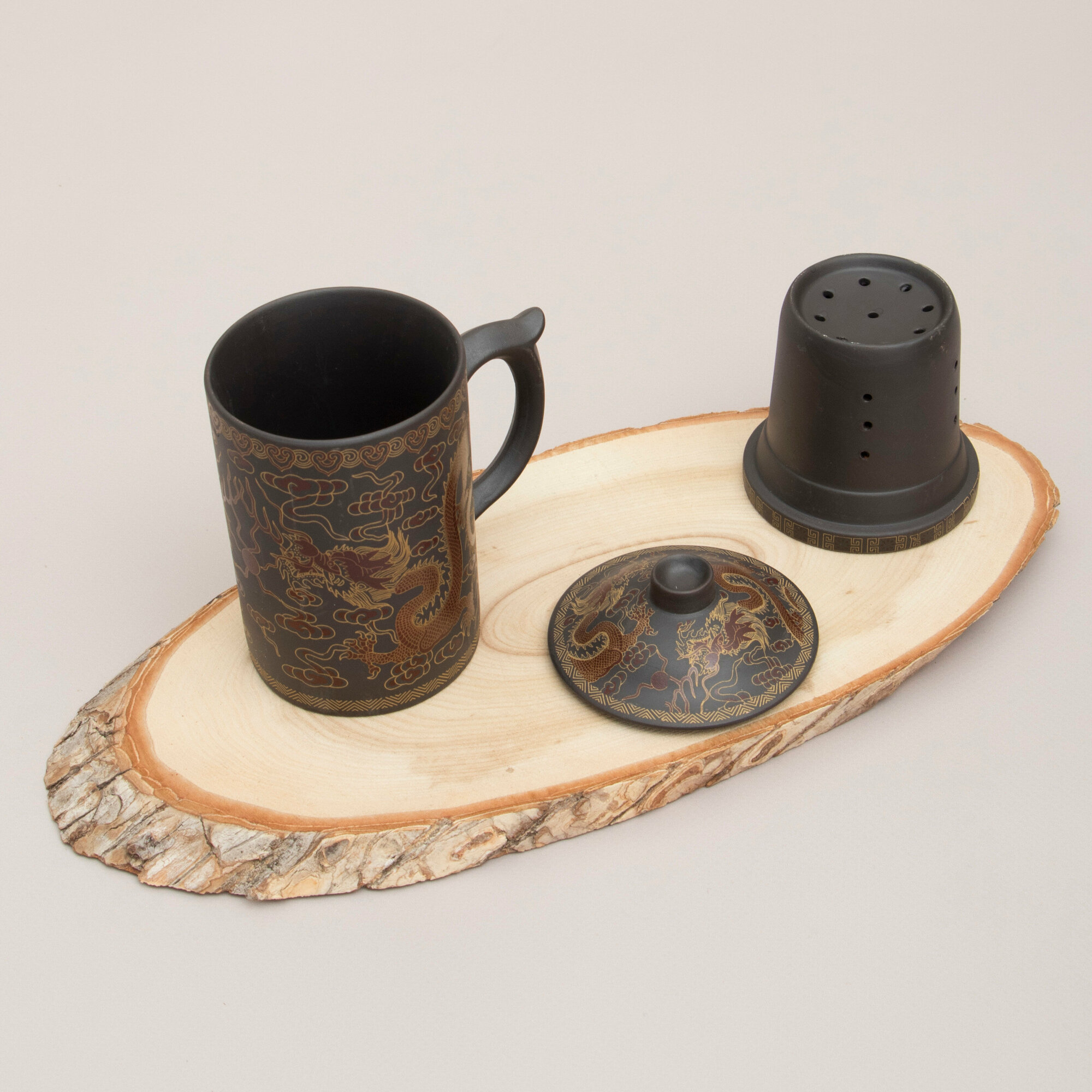 Кружка с ситечком Дракон N 6 (черный) чашка заварочная 300 мл Эврика, подарочная, символ года, для чайных церемоний 23 февраля, 8 марта