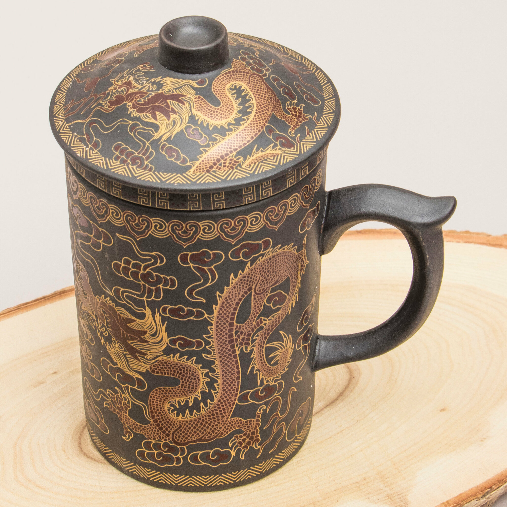 Купить Кружка из глины Золотой Дракон N 2 заварочная с ситечком 330 мл Эврика, подарочная, символ года 23 февраля, 8 марта