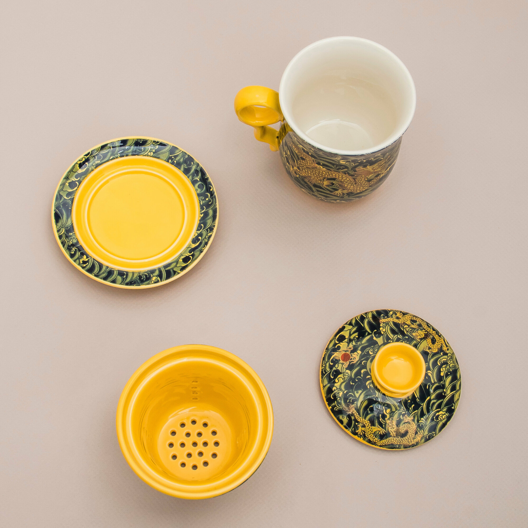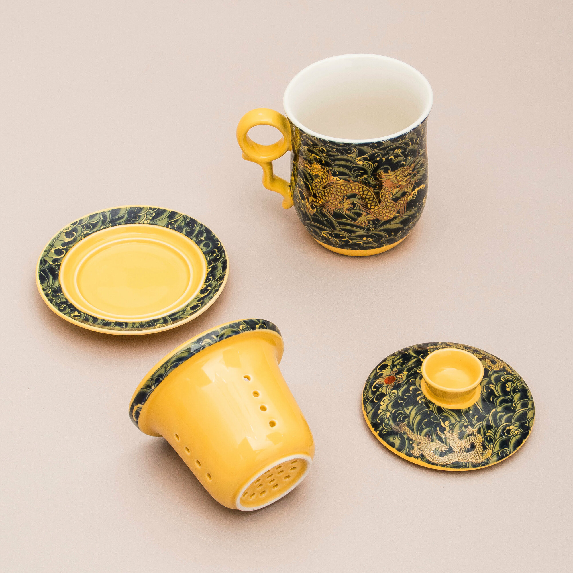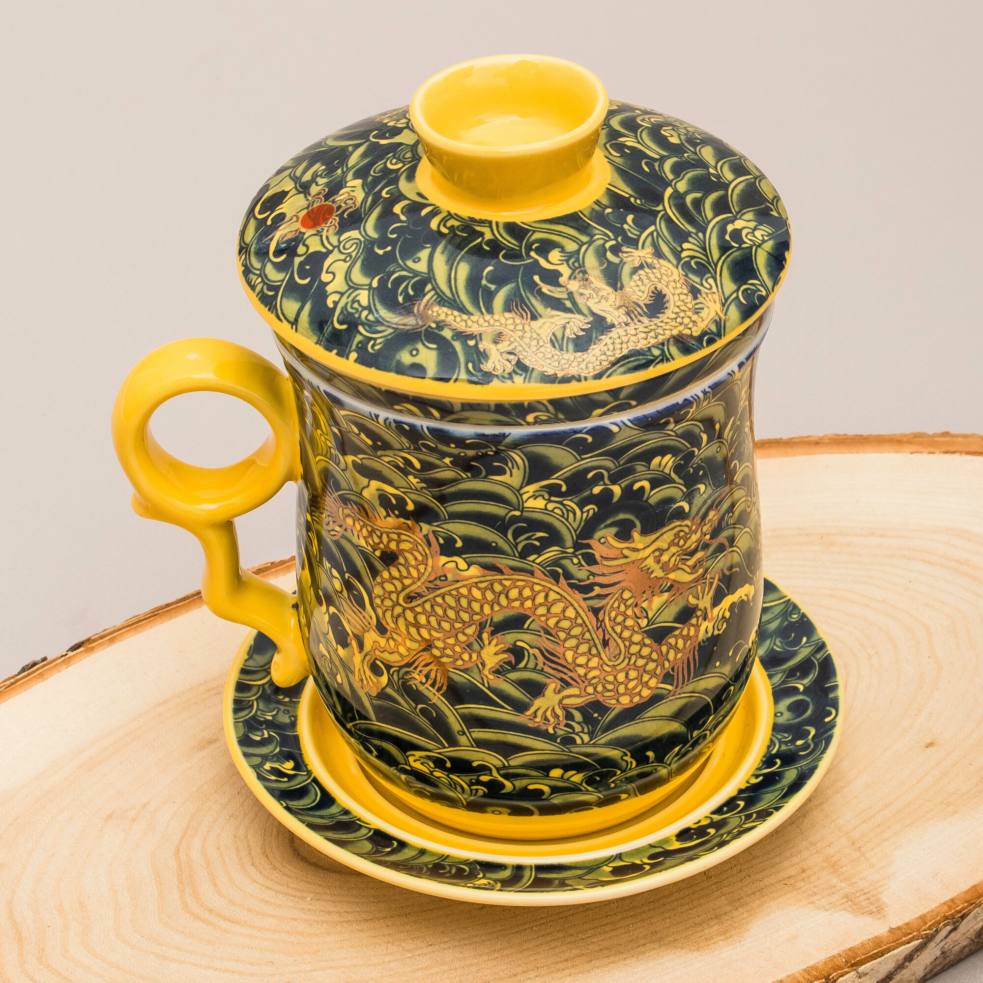 Кружка с ситечком Дракон N 1 (желтый) чашка заварочная 300 мл Эврика, подарочная, символ года, для чайных церемоний 23 февраля, 8 марта