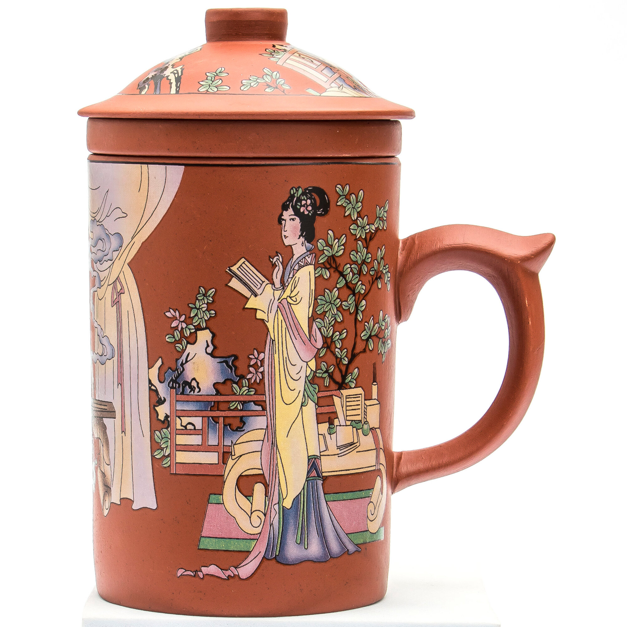 Купить Кружка из глины Китайская мудрость №1 330 мл, чашка заварочная с крышкой и ситечком для чая, мужская, женская подарочная