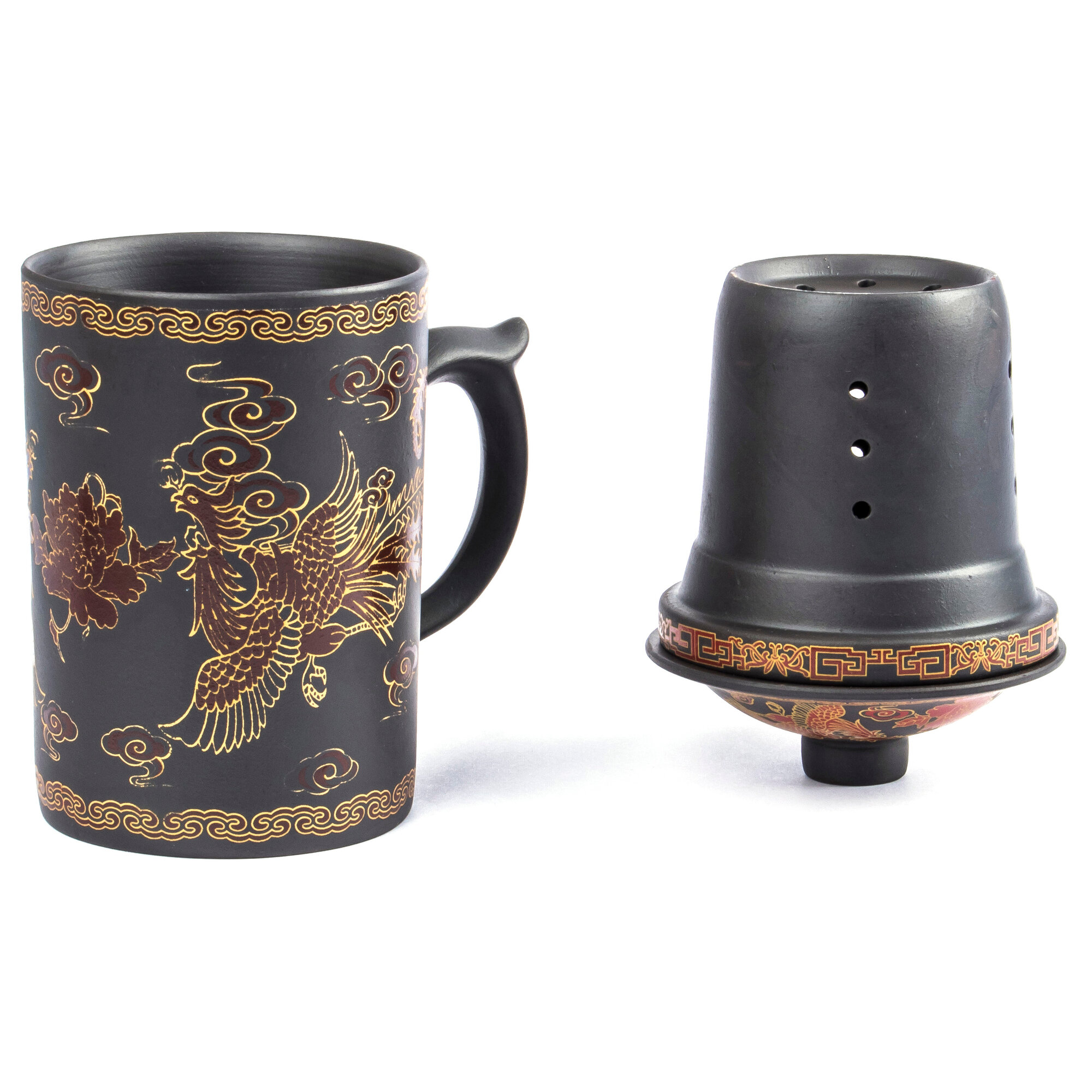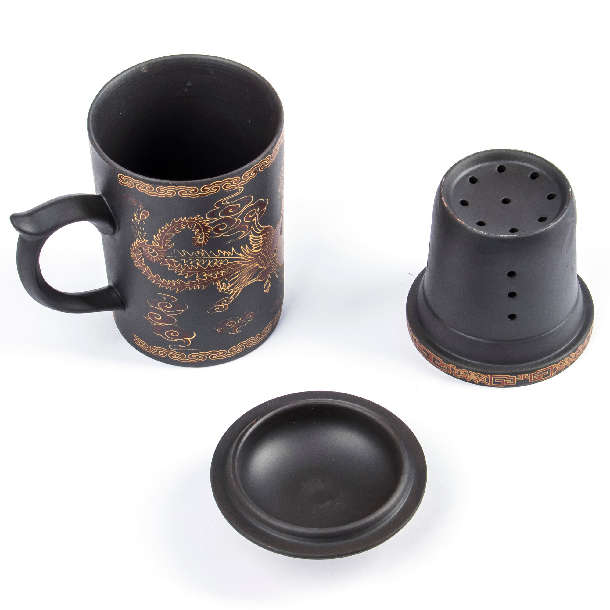 Кружка с ситечком Дракон N 6 (черный) чашка заварочная 300 мл Эврика, подарочная, символ года, для чайных церемоний 23 февраля, 8 марта