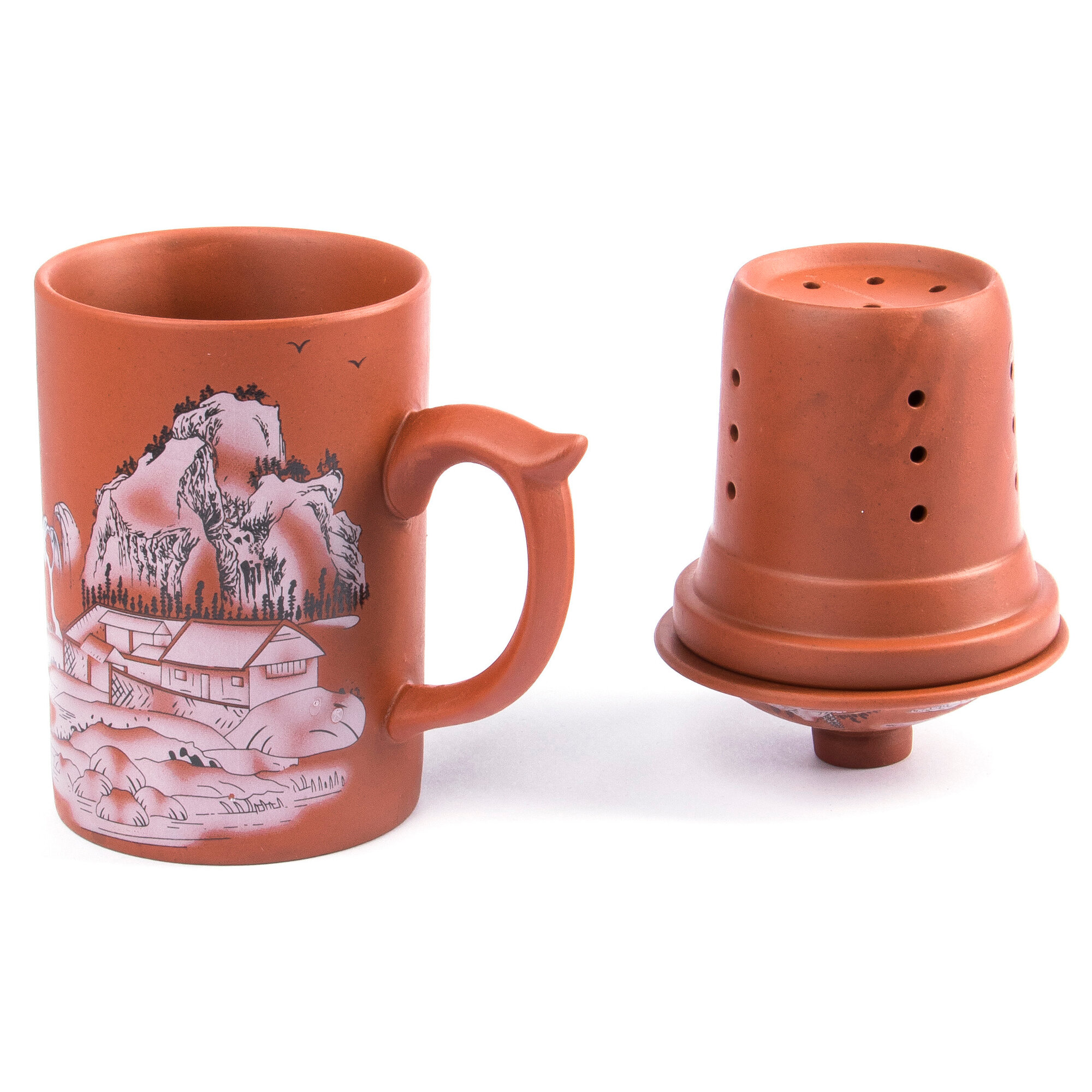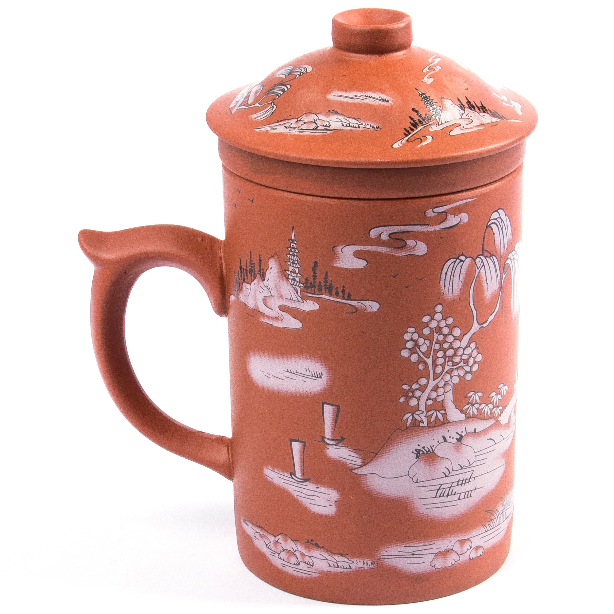 Купить Кружка из глины Китайская мудрость №4 330 мл, чашка заварочная с крышкой и ситечком для чая, мужская, женская подарочная