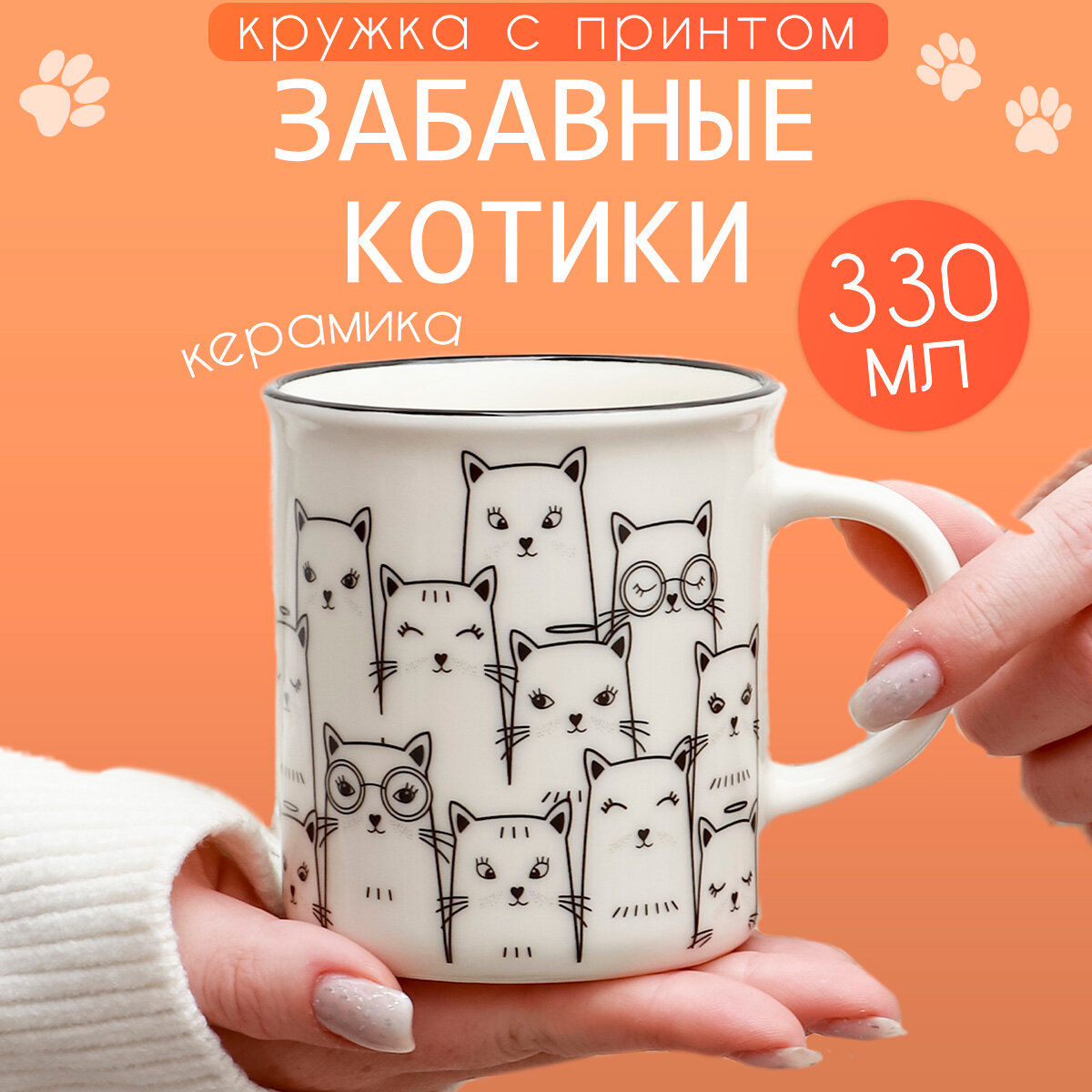 Кружка Забавные Котики серия N 4-3 330 мл, чашка с рисунком, для чая и кофе, женская, подарочная интересное: