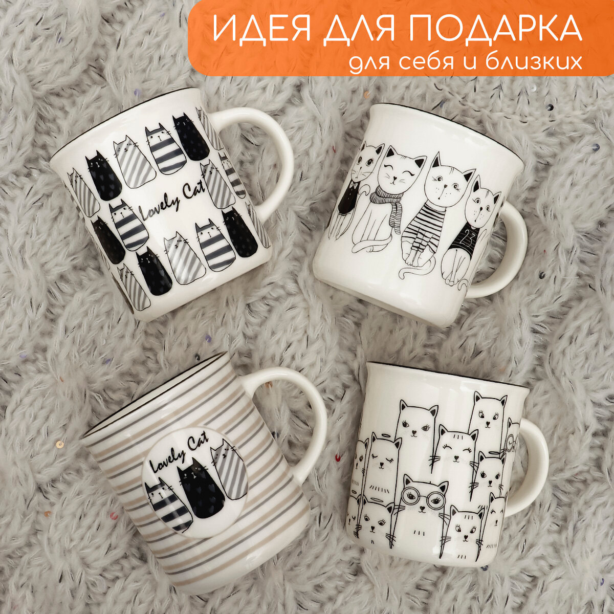 Кружка Забавные Котики серия N 4-1 330 мл, чашка с рисунком, для чая и кофе, женская, подарочная