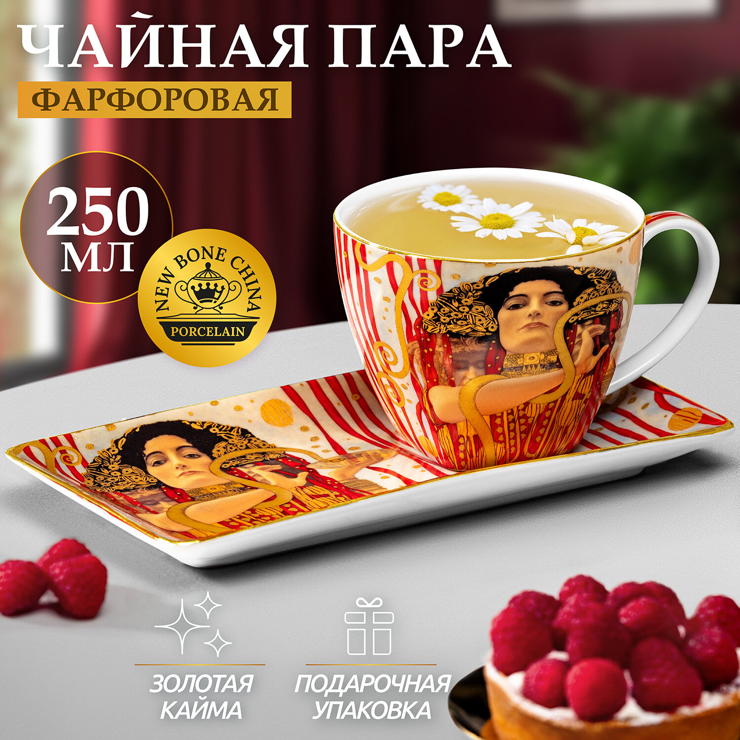 Чашка / кружка 250 мл с блюдцем для десерта 20х10х2 см Elan Gallery Поцелуй