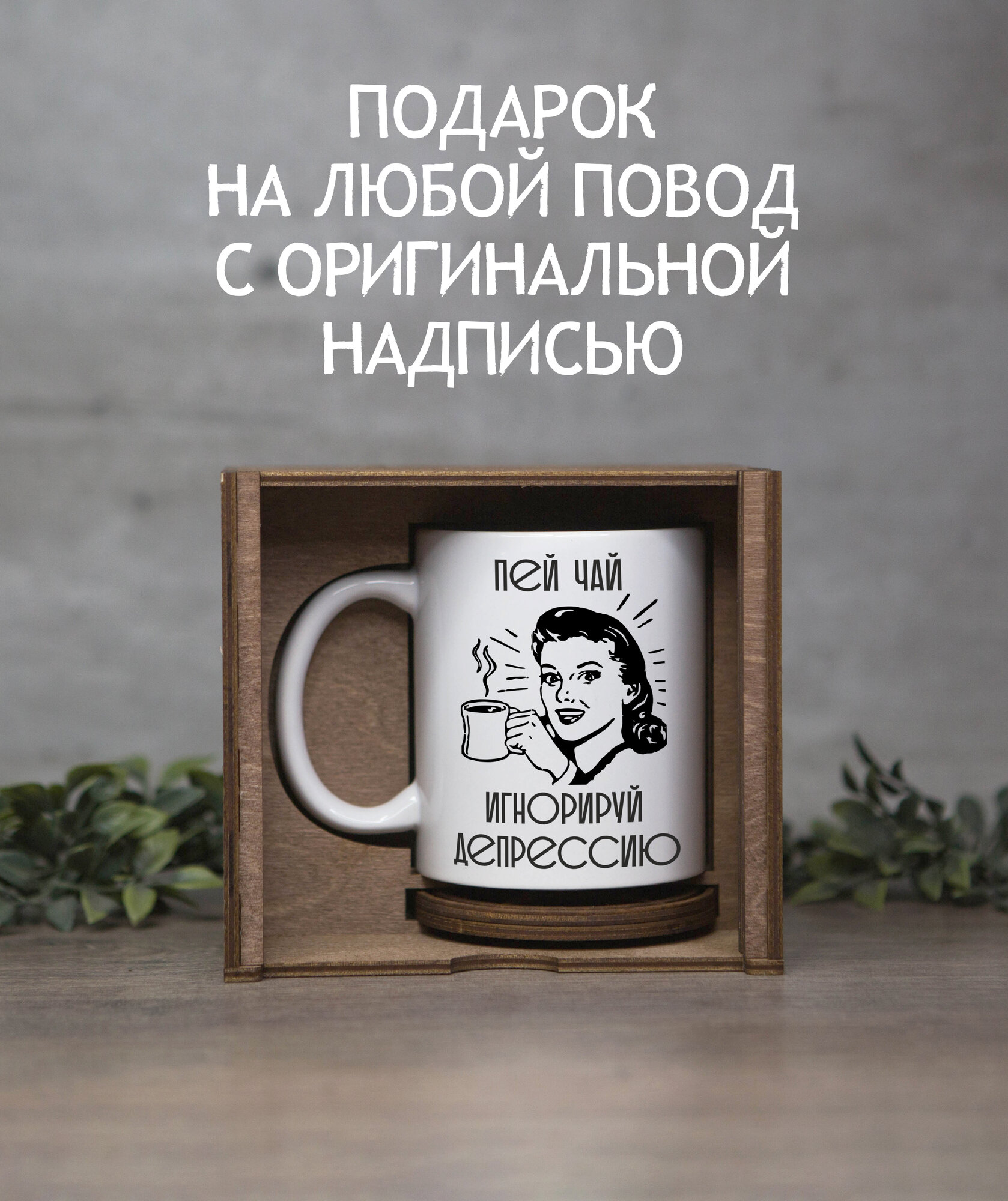Купить Кружка керамическая с приколом с принтом Пей чай, игнорируй депрессию