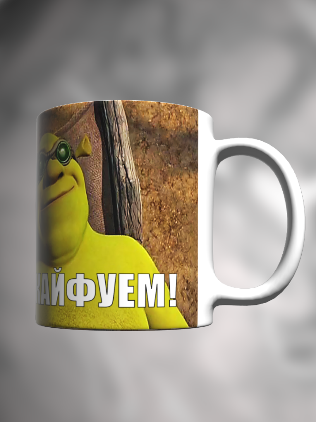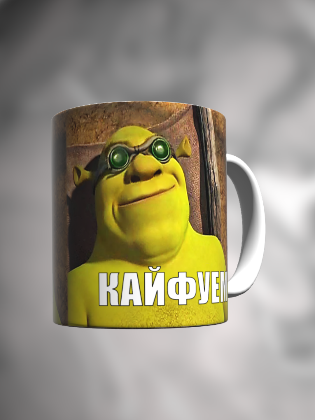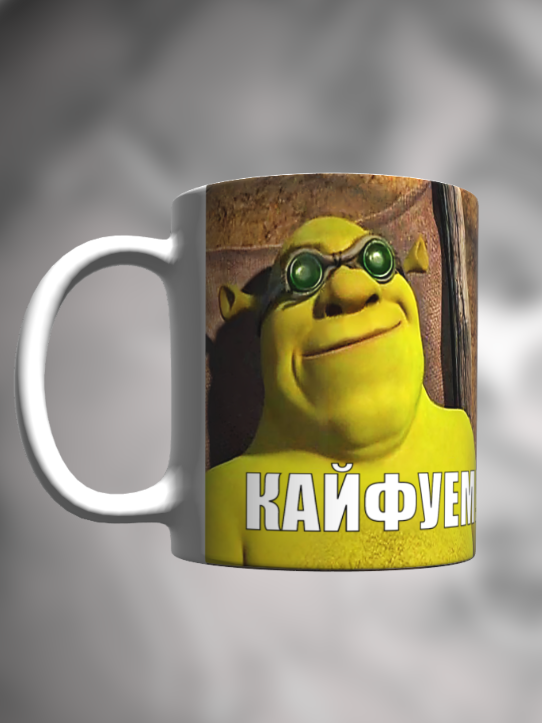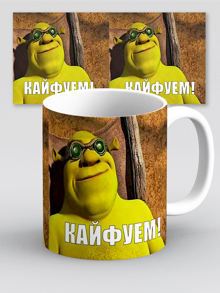 Кружка с приколом мем Шрек сидит в очках Кайфуем! Лежит в болоте интересное: