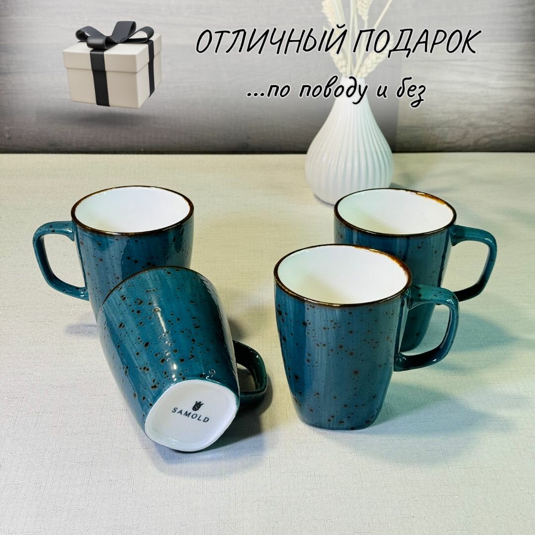 Набор кружек Samold, для чая/кофе, фарфор, высота 11 см, диаметр 9 см, 400мл, 4шт. интересное:
