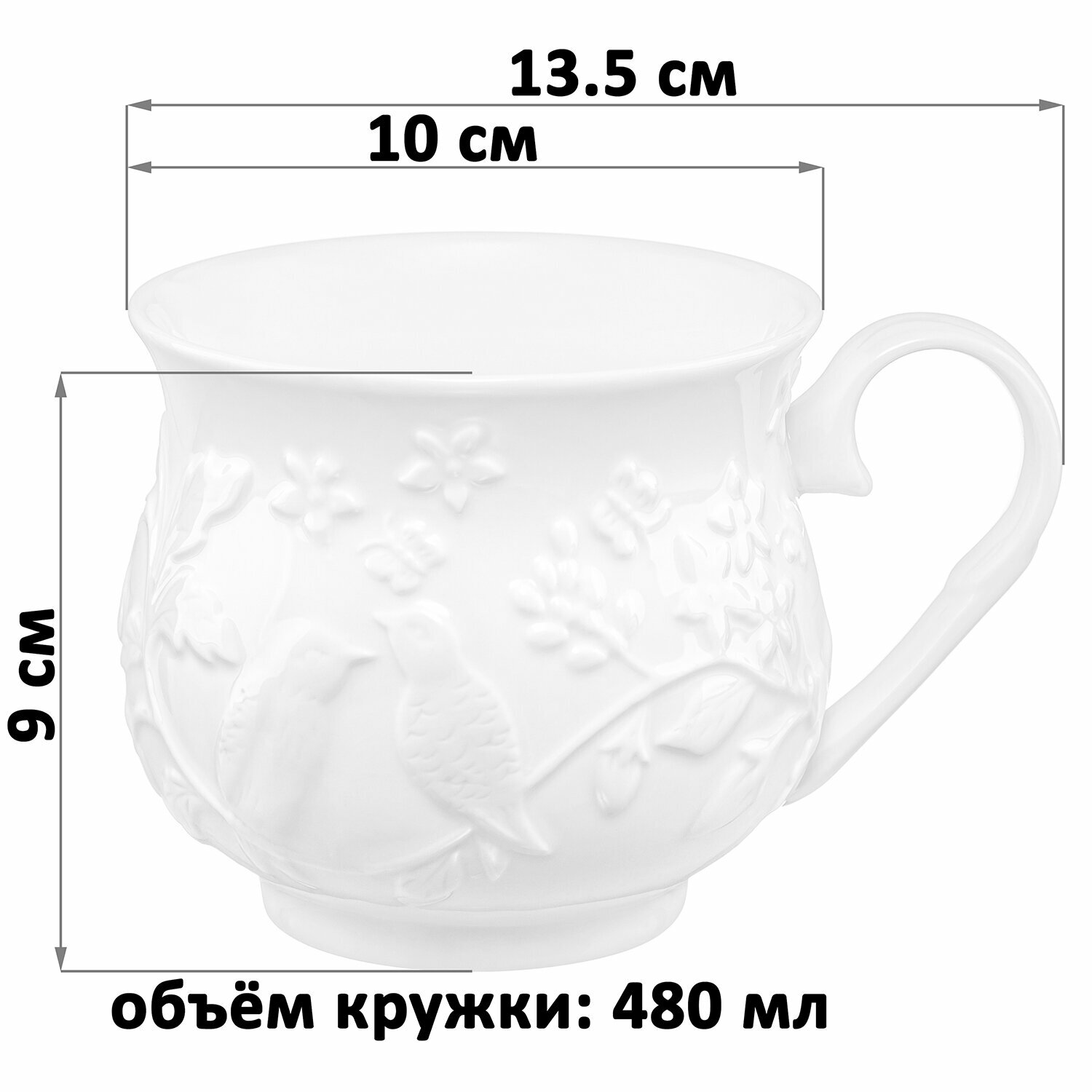 Кружка, чашка для чая, кофе 480 мл Elan Gallery Птички на ветке бочонок, 13,5х10х9 см интересное: