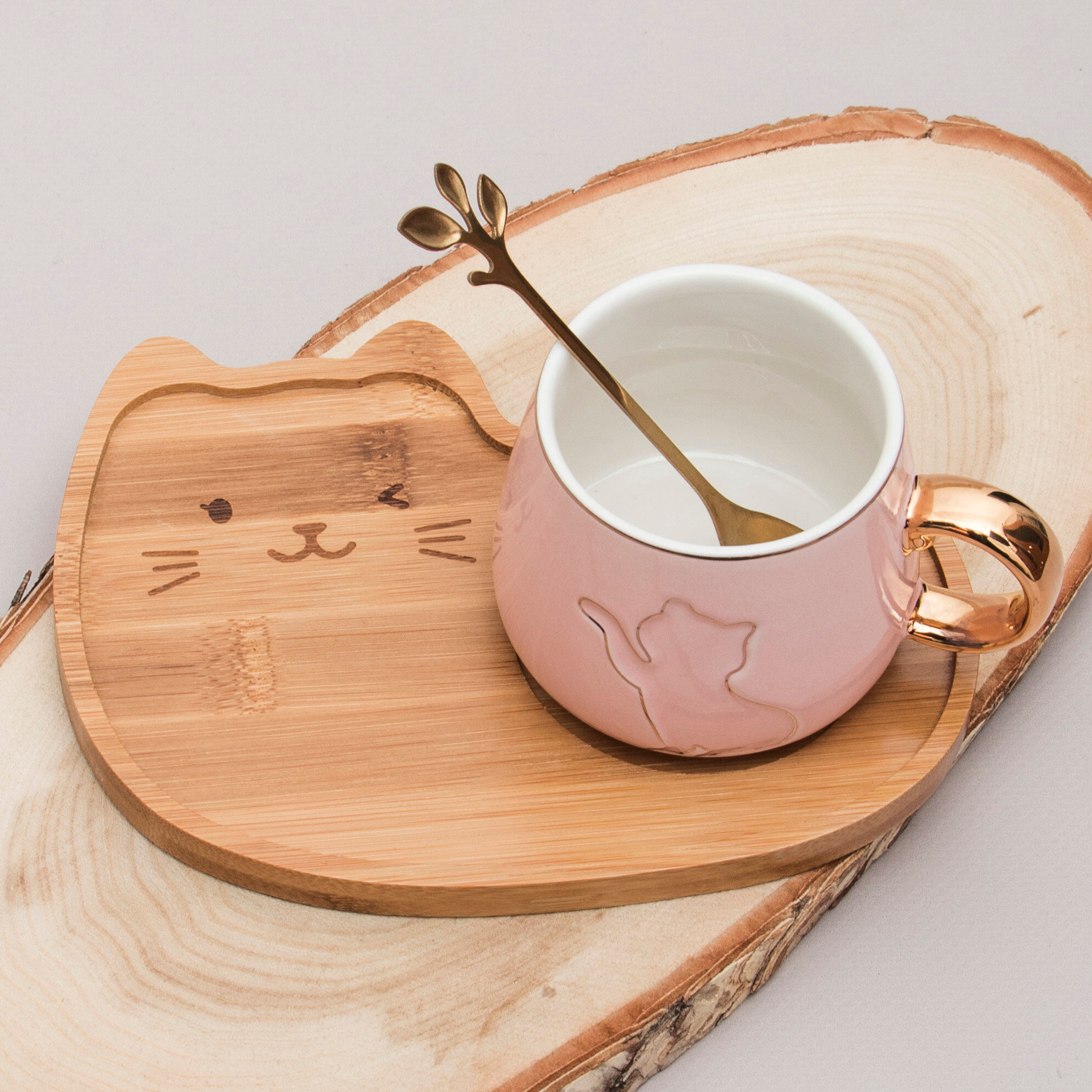 СохранитьКружка с блюдцем бамбук Котик Розовый 160 мл Эврика, кофейная пара, подарочный набор женский, чашка с ложкой 14 февраля, 8 марта интересное: