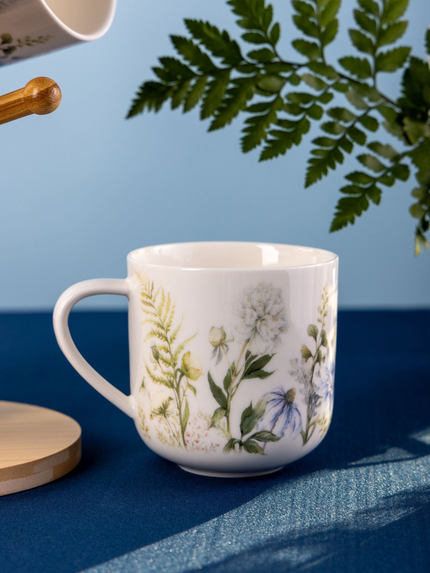 Купить Кружки Lefard "Grasses", набор 4 шт, с деревянной подставке, 420 мл, фарфоровые