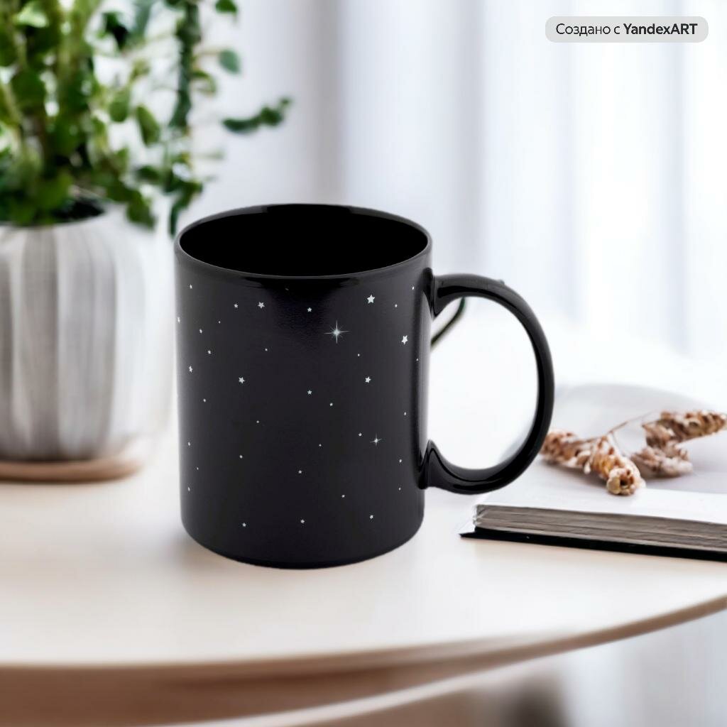 Кружка хамелеон Разогрей Созвездия 300 мл, черная, чашка для чая, меняет цвет, рисунок, мужская подарочная на 23 февраля