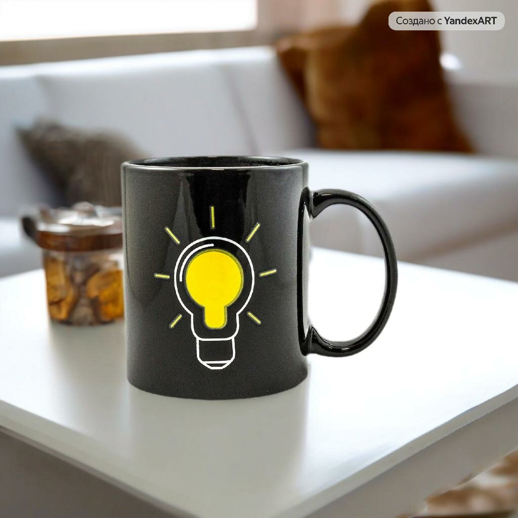 Купить Кружка хамелеон Включите идею NEW Лампочка 300 мл, черная, чашка для чая, меняет цвет / рисунок, мужская, подарочная