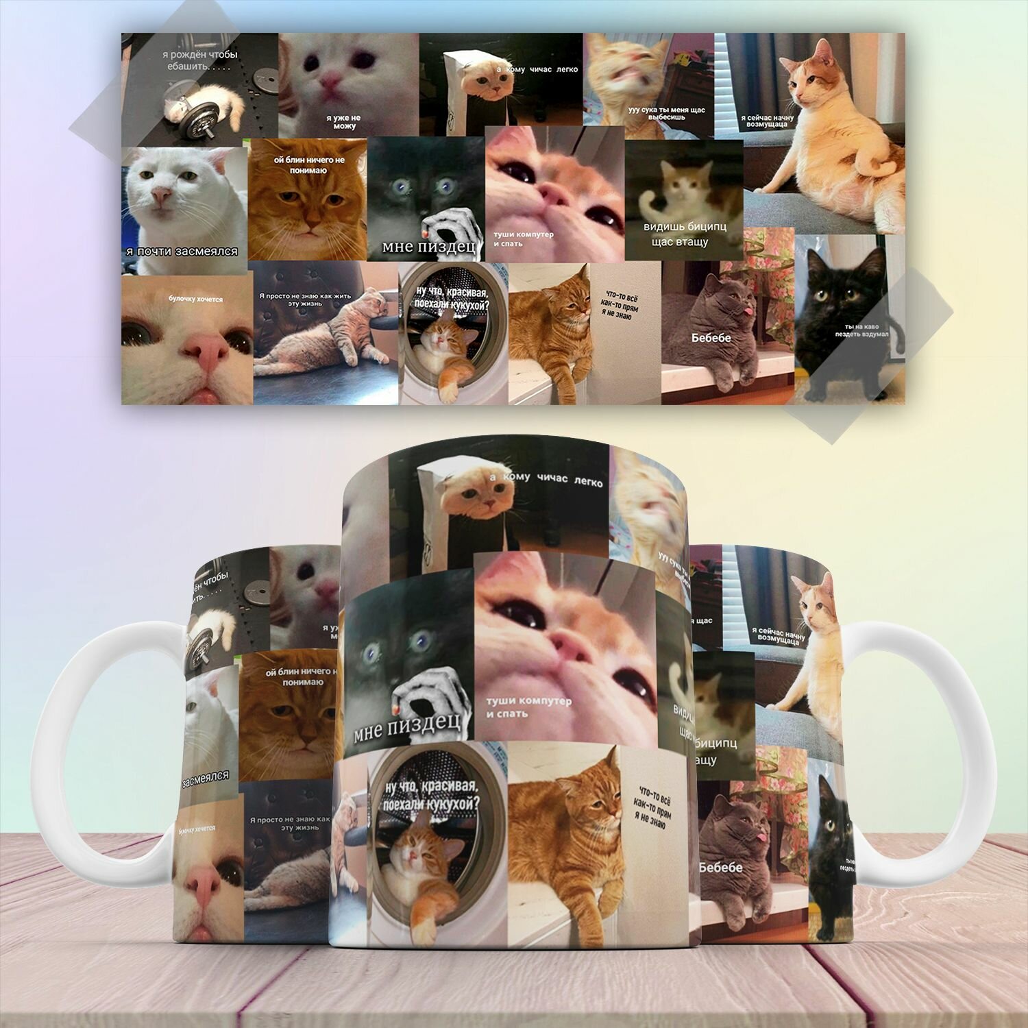 СохранитьКружка с приколом Мемные коты 330 мл интересное: