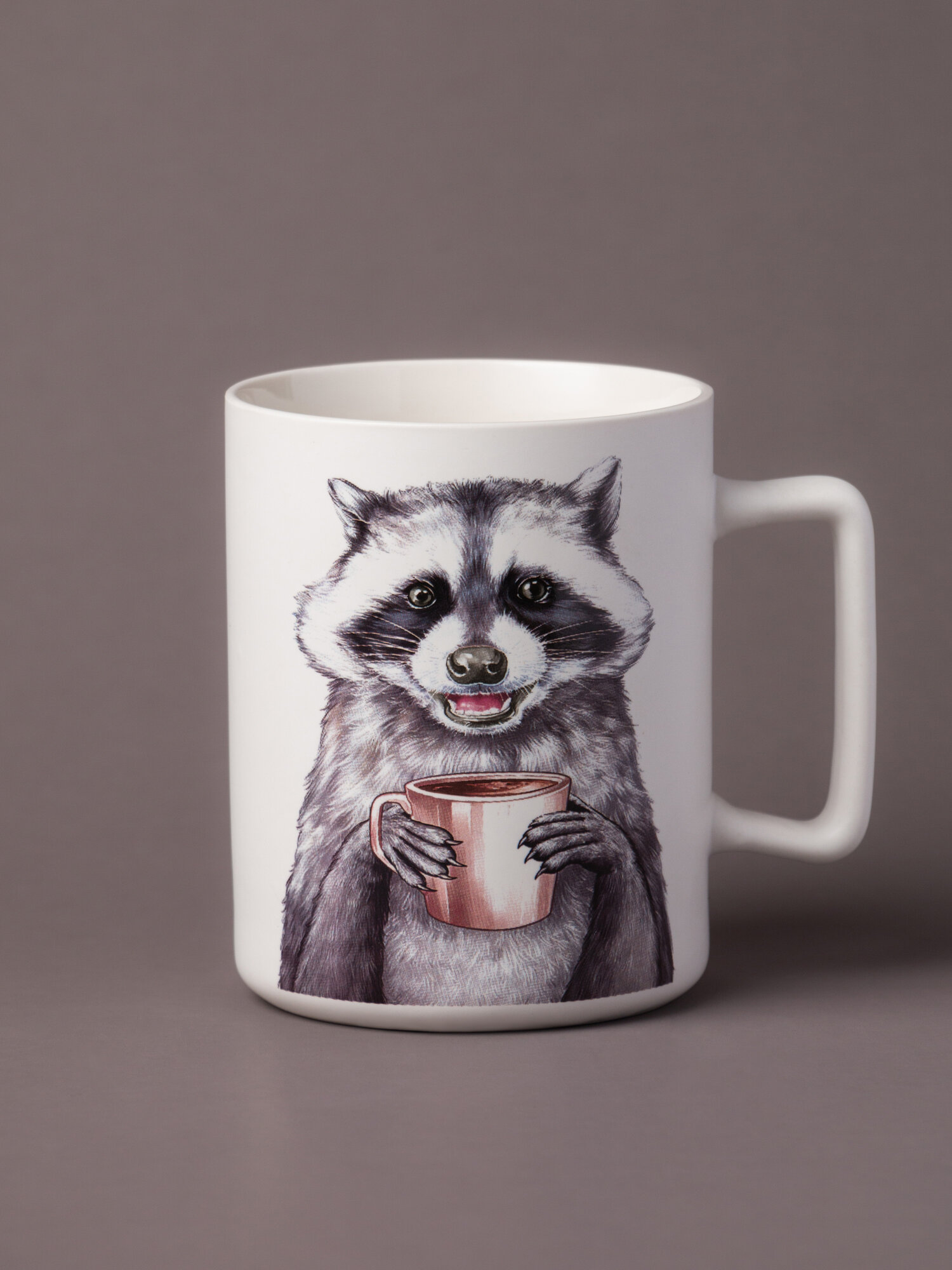 Кружка Lefard "Енот" 400 мл, для чая и кофе, фарфоровая, белая интересное: