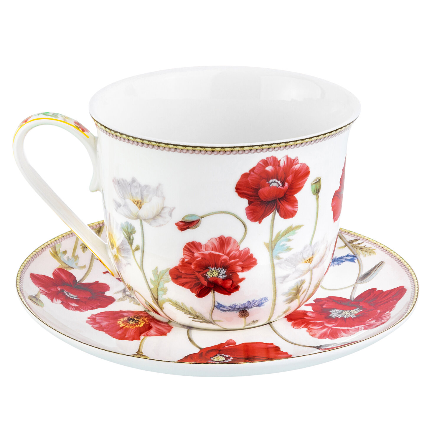Купить Чайная пара, чашка с блюдцем, кружка для чая, кофе 500 мл Elan Gallery Маки, 14х11х8,5 см