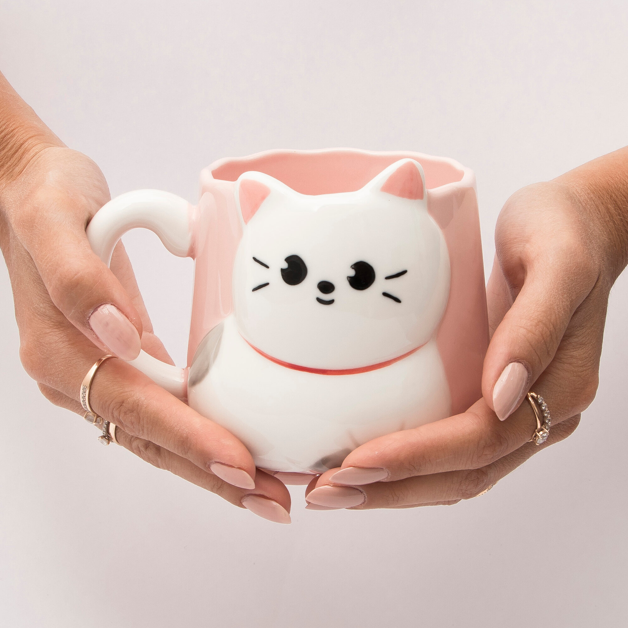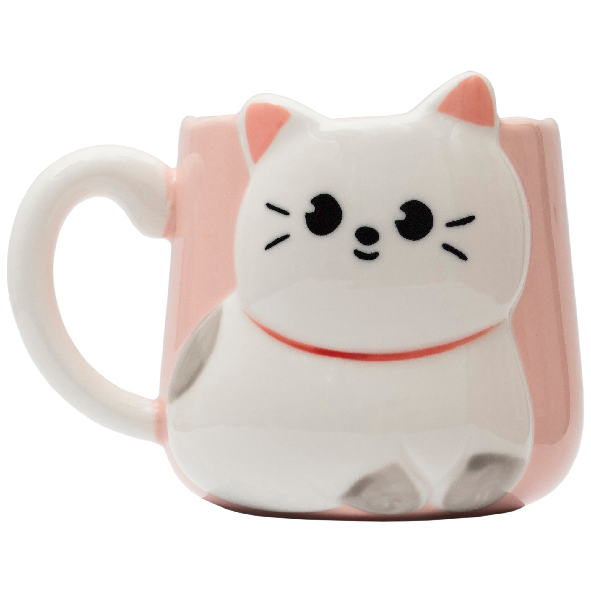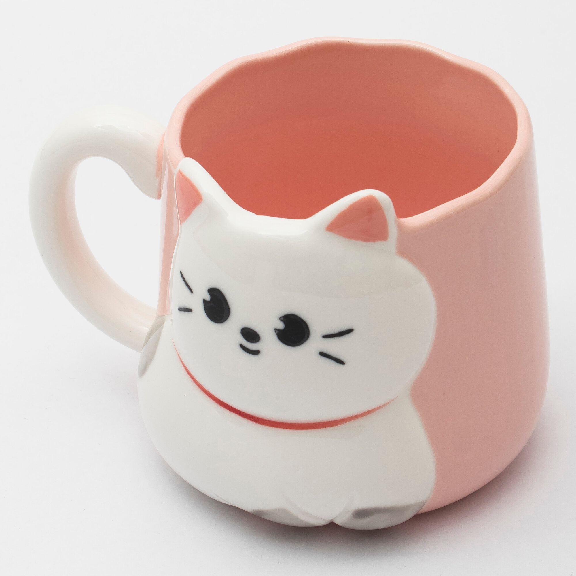 Купить Кружка керамическая "Белый котик" 500 мл розовая, для чая/кофе, подарочная