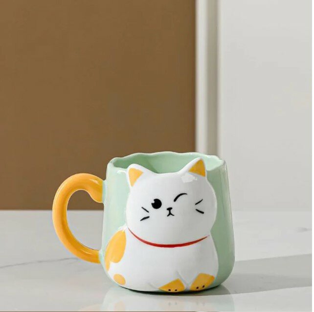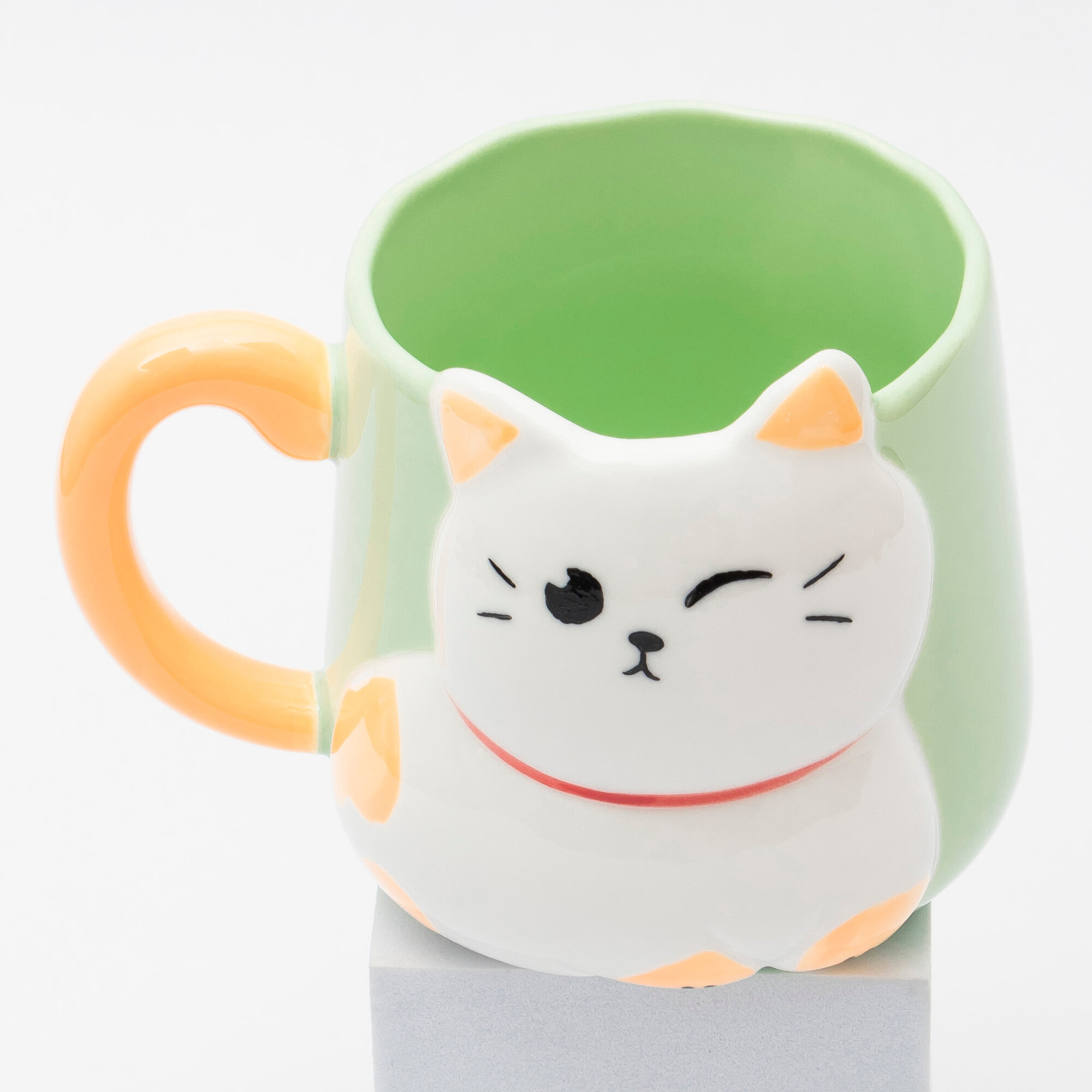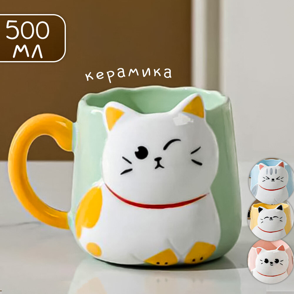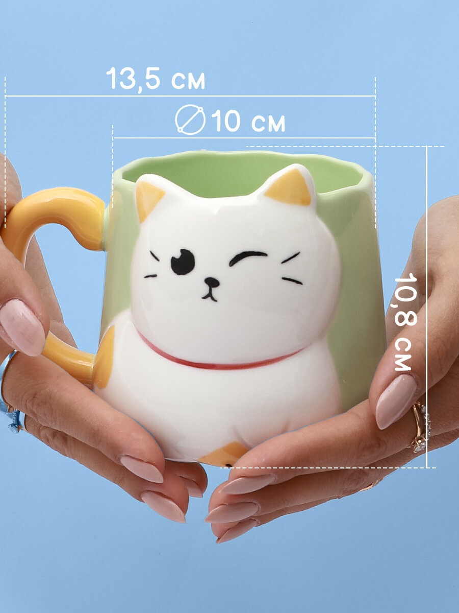 Купить Кружка керамическая "Белый котик" 500 мл зеленая, для чая/кофе, подарочная