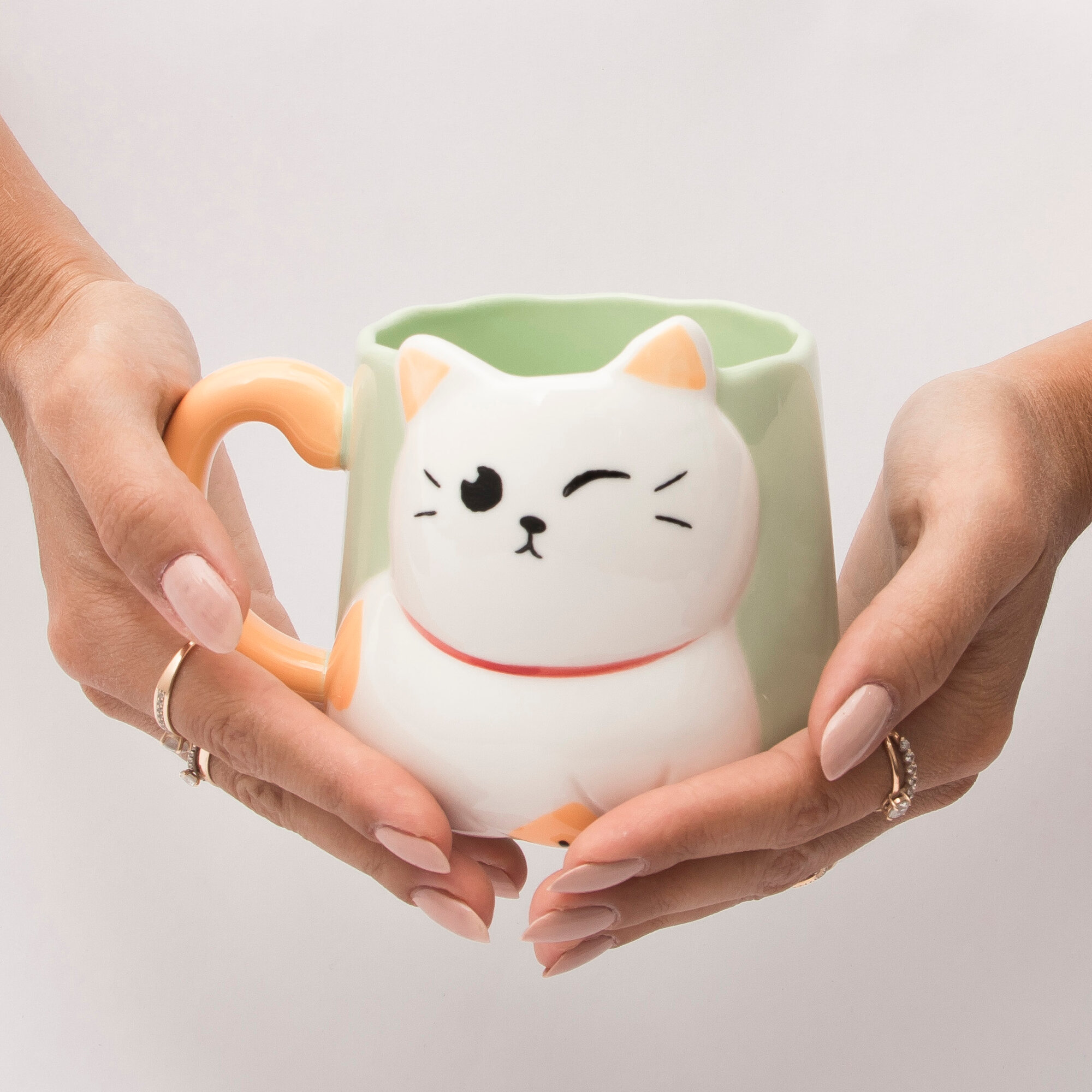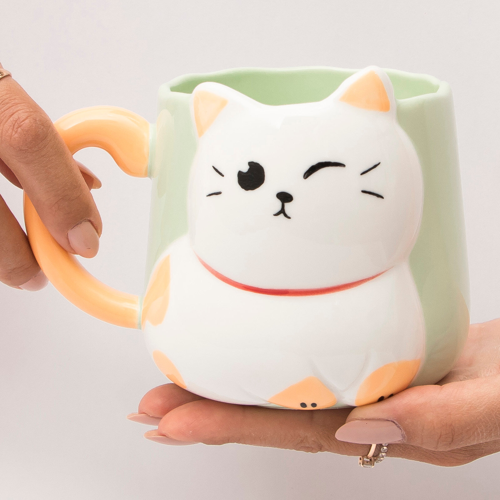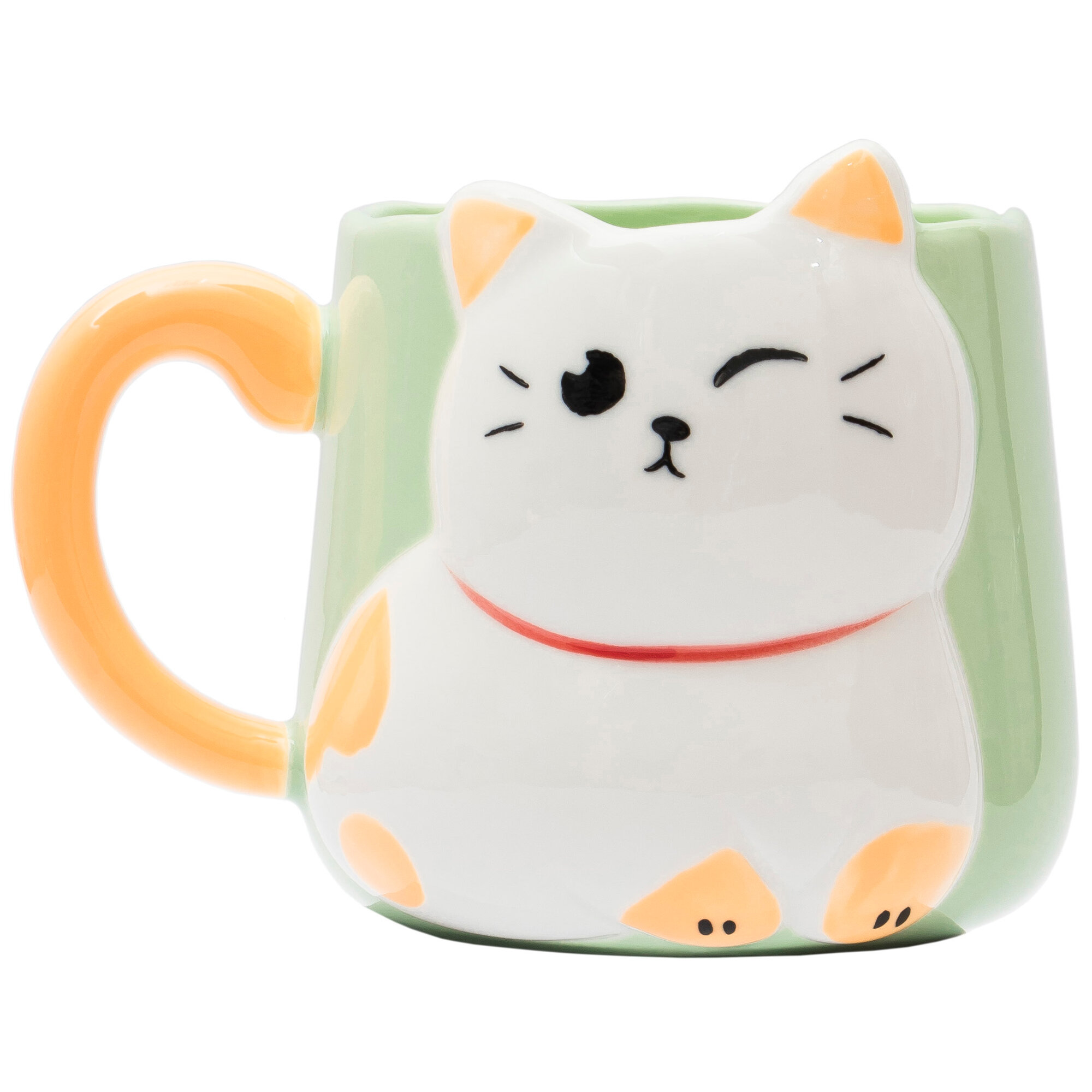 Купить Кружка керамическая "Белый котик" 500 мл зеленая, для чая/кофе, подарочная