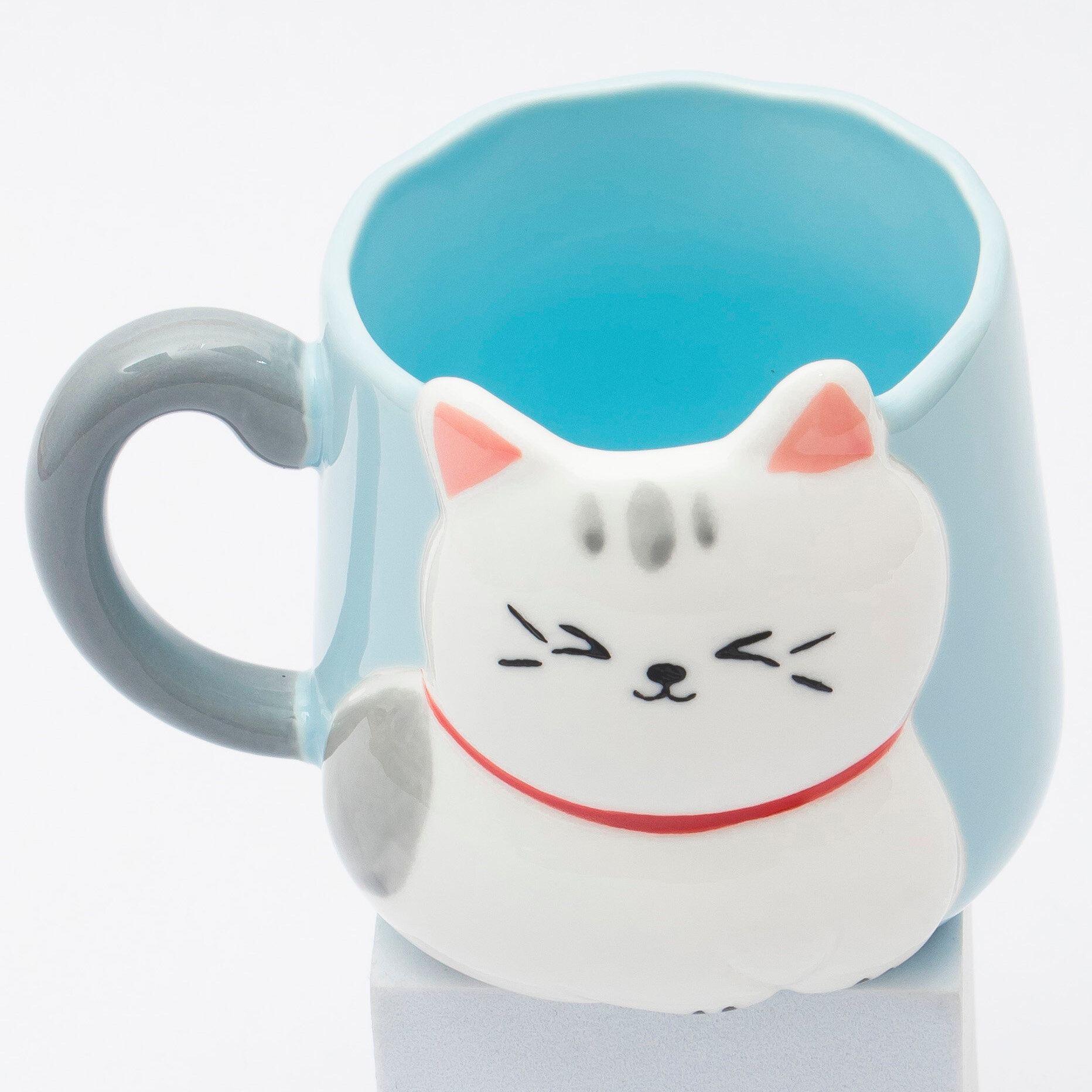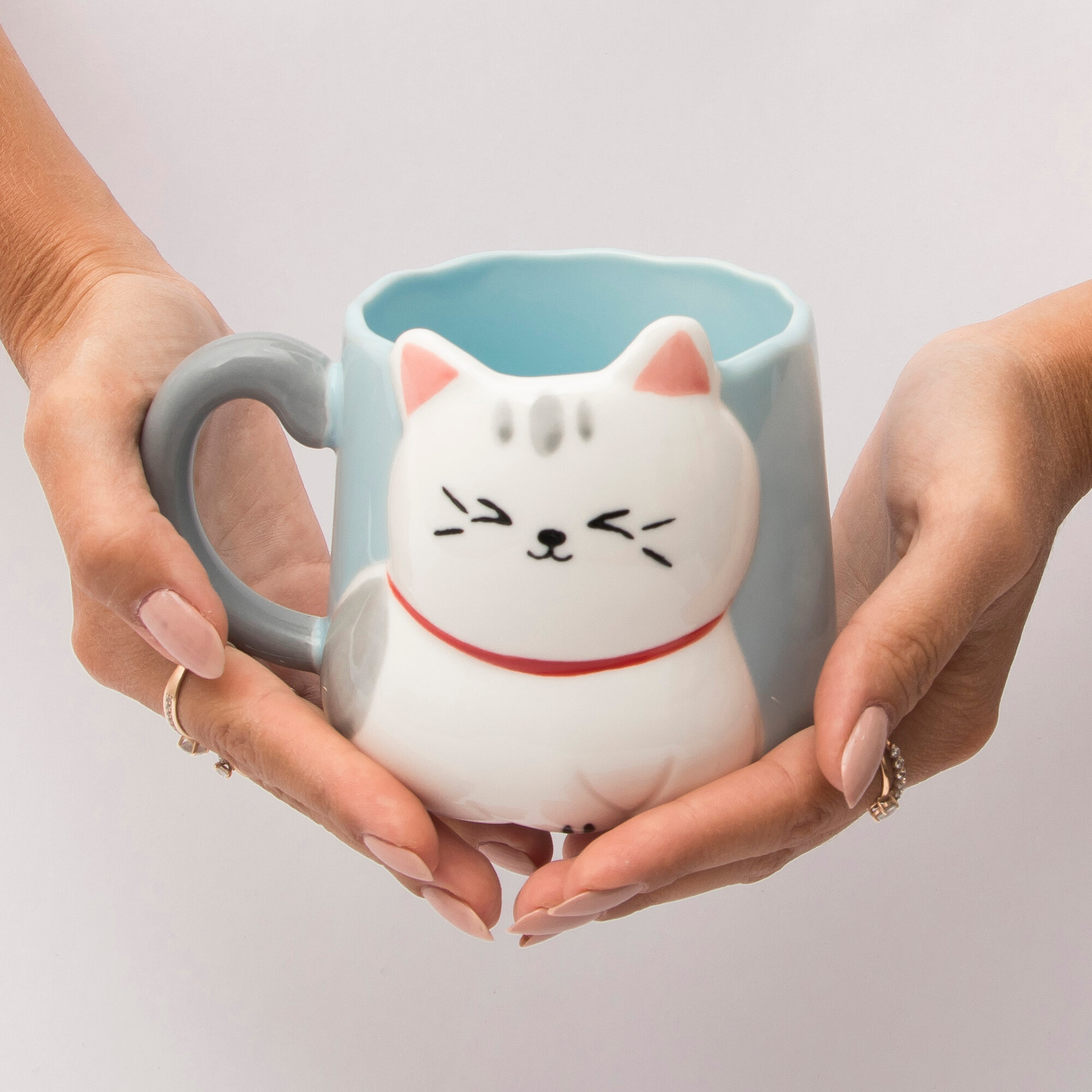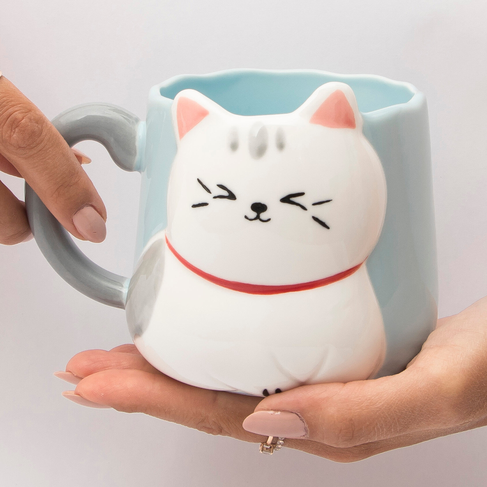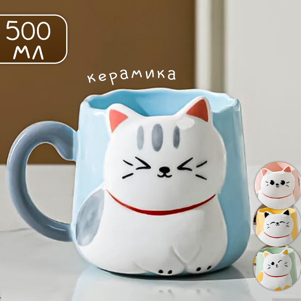 Купить Кружка керамическая "Белый котик" 500 мл синяя, для чая/кофе, подарочная
