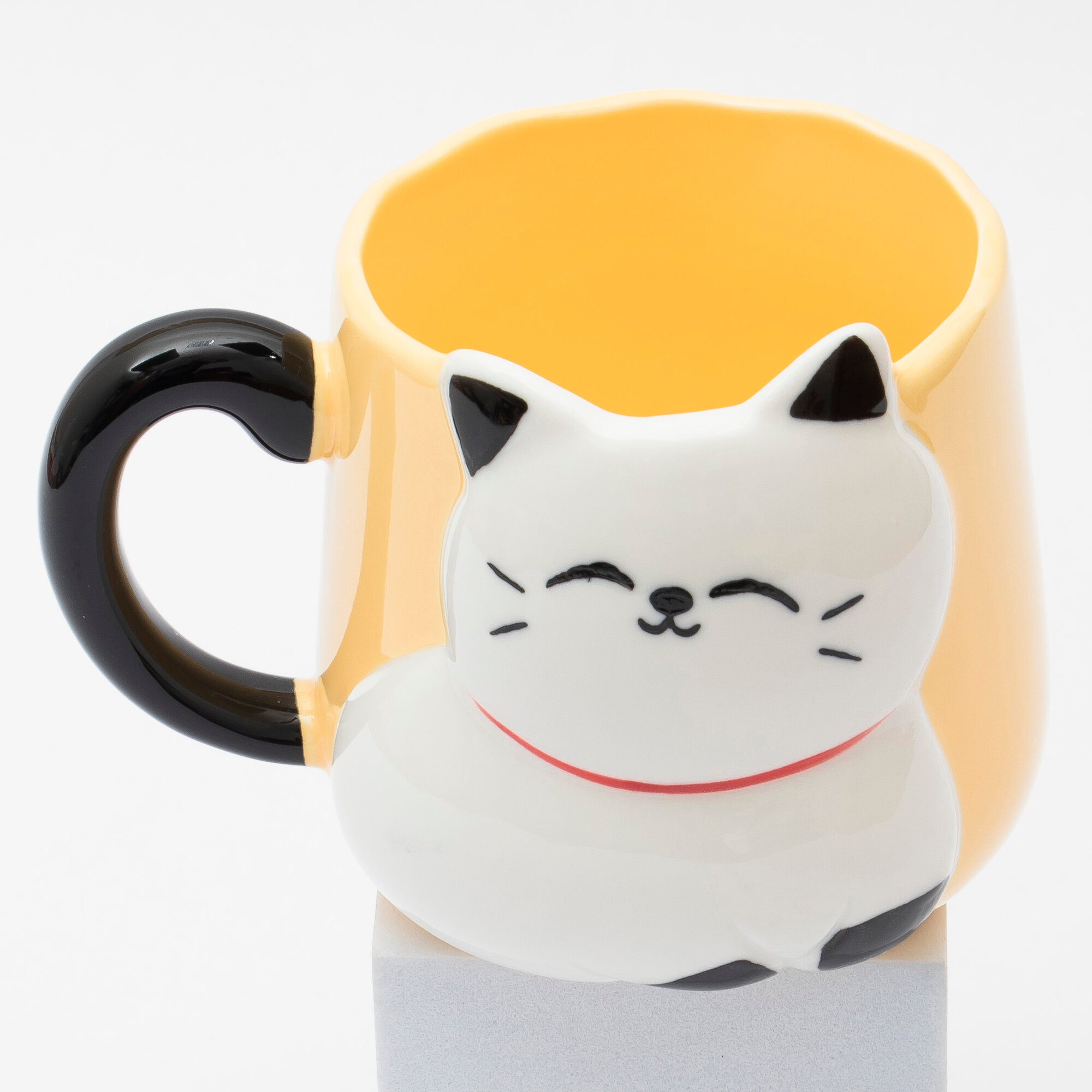 Купить Кружка керамическая "Белый котик" 500 мл желтая, для чая/кофе, большая, с принтом подарочная